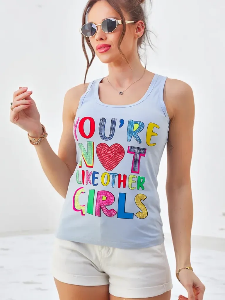 - Damska bawełniana bluzka bokserka na ramiączkach z unikalnymi napisami, która łączy komfort z modnym designem. Lekka i przewiewna, idealna na letnie dni i casualowe stylizacje.