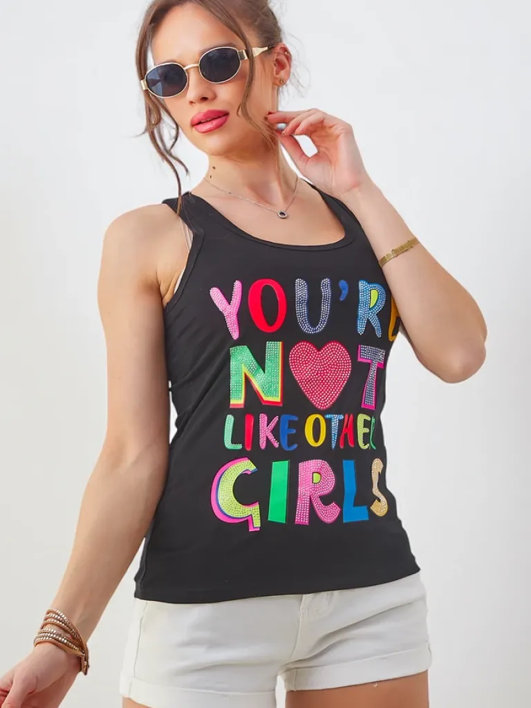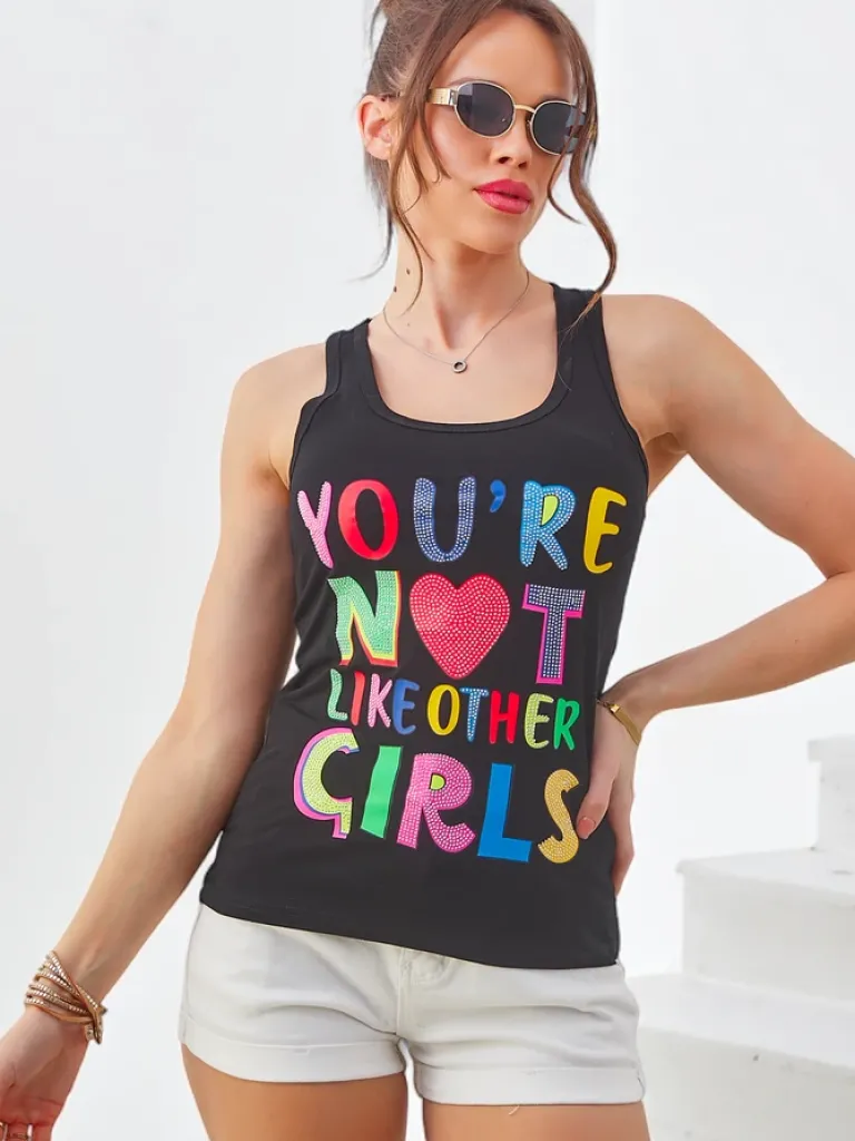 - Damska bawełniana bluzka bokserka na ramiączkach z unikalnymi napisami, która łączy komfort z modnym designem. Lekka i przewiewna, idealna na letnie dni i casualowe stylizacje.