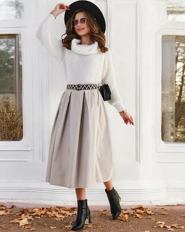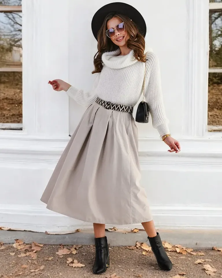 - Damska spódnica midi wykonana z miękkiej tkaniny a 'la sztruks. Model posiada 2 kieszenie oraz pasek w zestawie. Idealna baza dla wielu wyjątkowych outfitów! UWAGA: Dokładność pomiaru (+/-) 1 cm.
