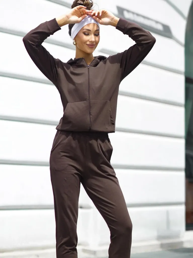- Damski komplet dresowy wykonany z przyjemnego materiału bawełnianego. Bluza zapinana na suwak z kapturem i kieszeniami. Długie spodnie z gumą w pasie i na nogawkach, z 2 kieszeniami. Poczuj styl w tym wspaniałym komplecie!