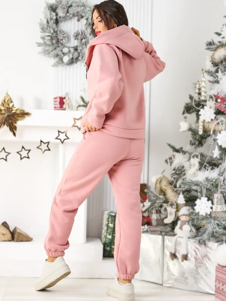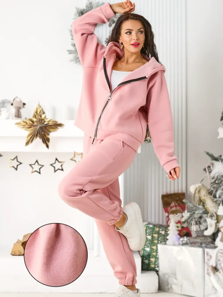 - Wygodny damski komplet dresowy – składa się z bluzy na suwak oraz z długim rękawem i kapturem. Spodnie z gumką w pasie i 2 kieszeniami. Must have na co dzień! UWAGA: Dokładność pomiaru (+/-) 1 cm.