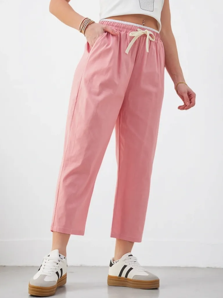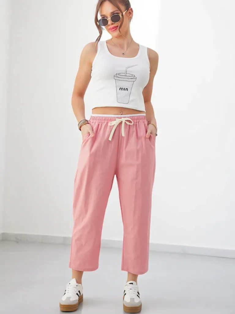- Rewelacyjne szerokie spodnie wykonane z lekkiej tkaniny, model posiada 2 kieszenie, gumę i troczki w pasie. Must have w Twojej szafie! UWAGA: Dokładność pomiaru (+/-) 1 cm.