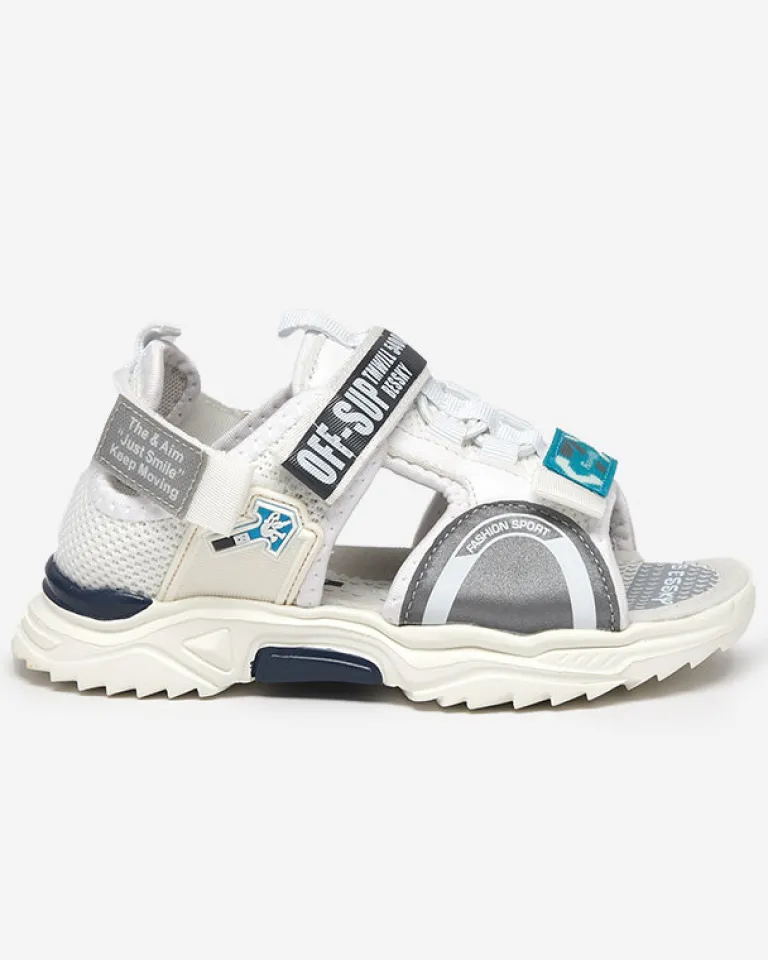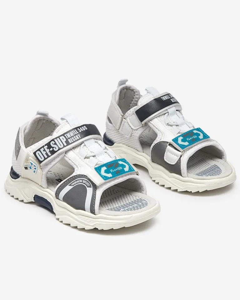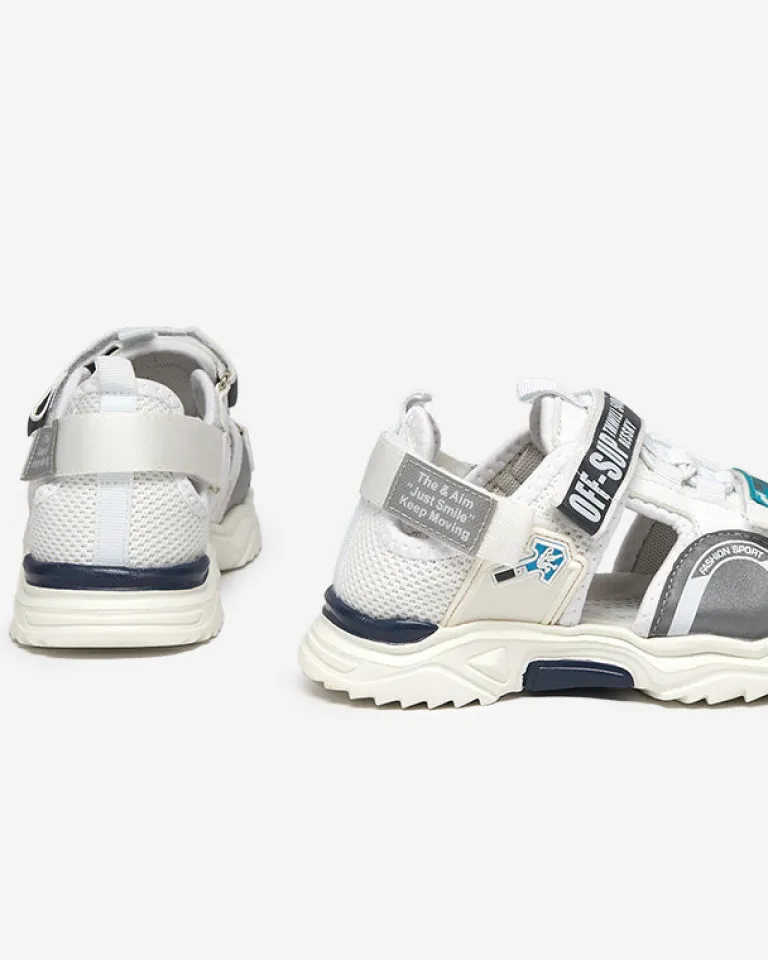 - Modne i wygodne sandały dziecięce na płaskiej podeszwie. Wykonane z połączenia tkaniny i eko-nubuku, zapinane na rzepy. Model z zakrytą piętą – świetne na wakacyjne dni!