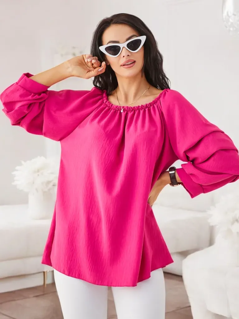 - Wyjątkowa damska bluzka a’la hiszpanka wykonana z miękkiego, przyjemnego materiału. Posiada okrągły dekolt z gumką oraz rękawy zdobione falbankami. Idealna na co dzień jak i specjalne okazje!