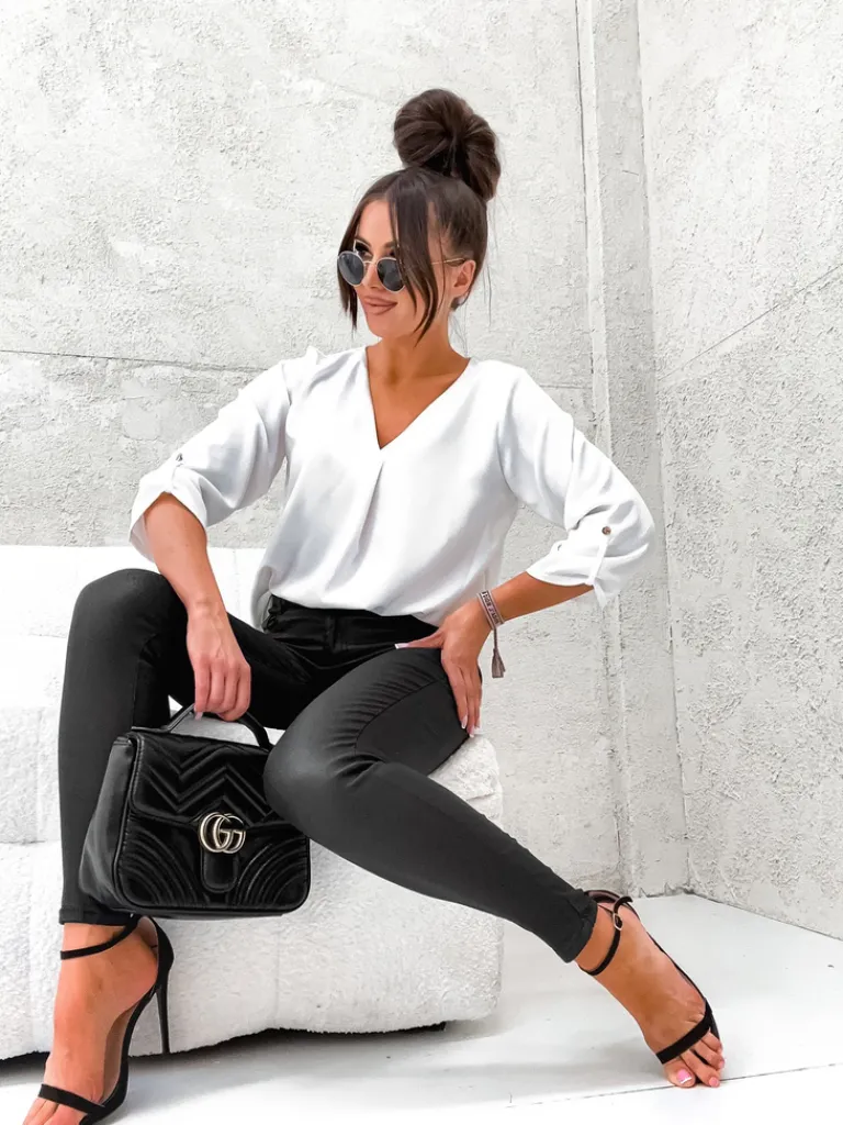 - Elegancka bluzka damska, która podkreśla kobiecą delikatność. Miękki materiał otula sylwetkę, a kokarda dodaje wyrafinowanego akcentu. Idealna na wieczorne wyjścia i specjalne okazje!