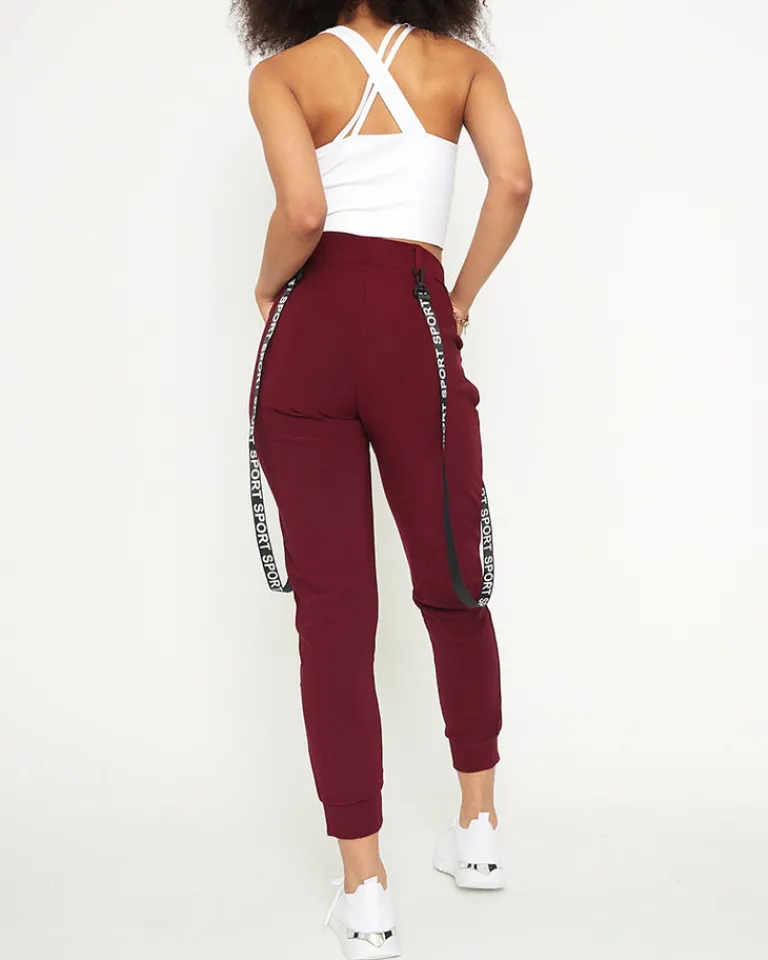 - Wyjątkowe damskie spodnie typu bojówki, wykonane z elastycznej tkaniny. Model posiada rozciągliwą gumkę w pasie, dwie wsuwane kieszenie i dwie ozdobne z napisami. Dodatkowo do spodni dołączono ozdobne szelki. UWAGA: Dokładność pomiaru (+/-) 1 cm.