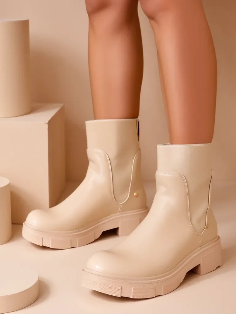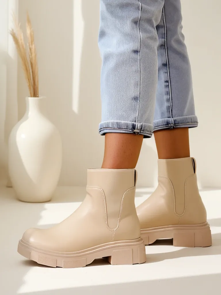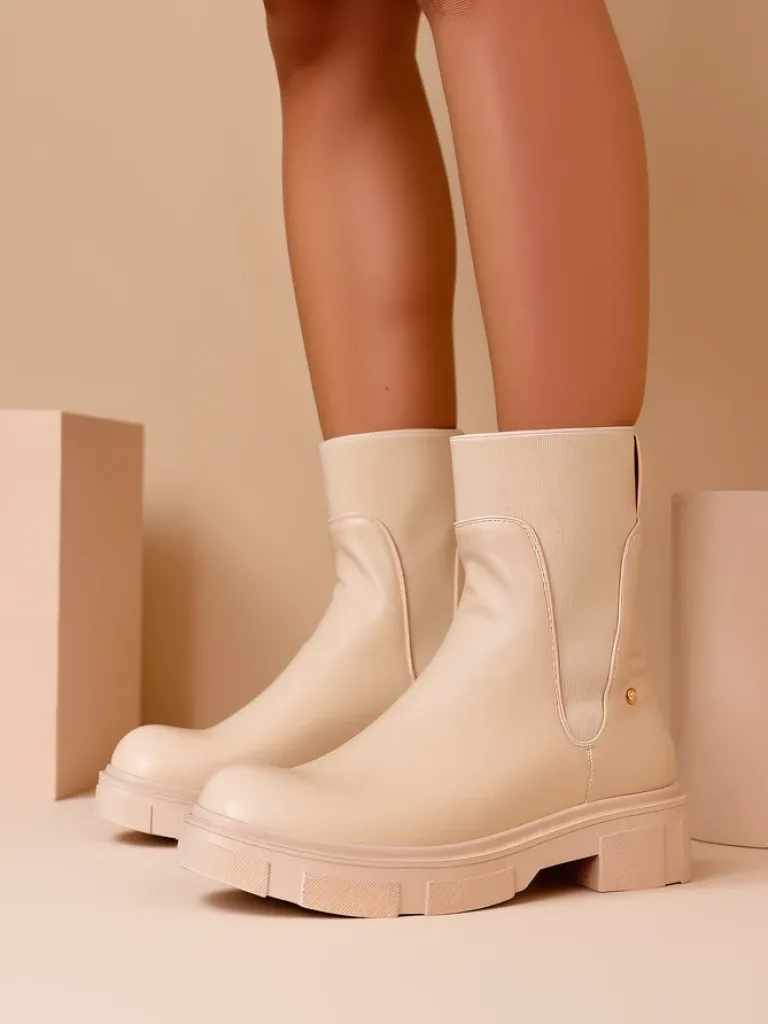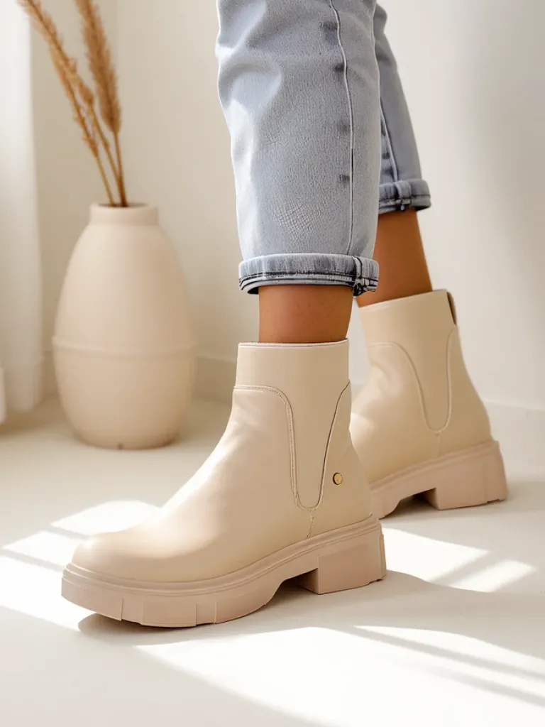 - Rewelacyjne botki damskie na płaskim obcasie, wykonane są z eko skóry. Wnętrze wykonane z tkaninowej wkładki. Elastyczne wstawki po bokach zapewniają idealne dopasowanie!