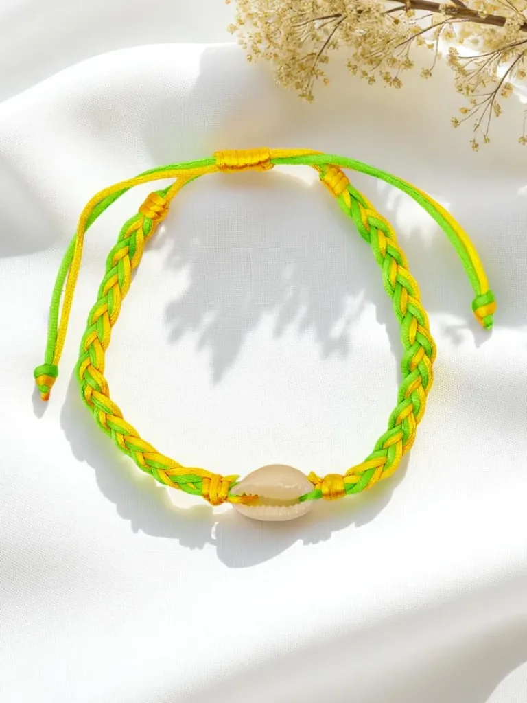 - Bransoletka na sznurku z regulacją, ozdobiona naturalną muszelką. Lekka i pełna nadmorskiego uroku, doskonała na letnie dni. Wprowadza wakacyjny klimat i subtelną elegancję do każdej stylizacji, idealna na plażę, spacer po wybrzeżu czy letnie przyjęcie.