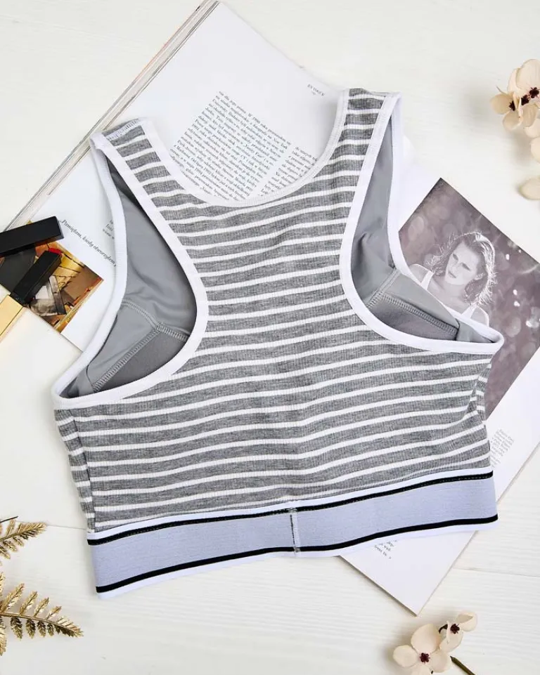 - Klasyczny sportowy damski biustonosz wykonany z elastycznego, przyjemnego materiału. Model z szerokimi ramiączkami i z niewyjmowanymi wkładkami, wykończony na dole szeroką gumą. Idealnie dopasuje się do ciała.