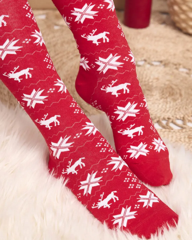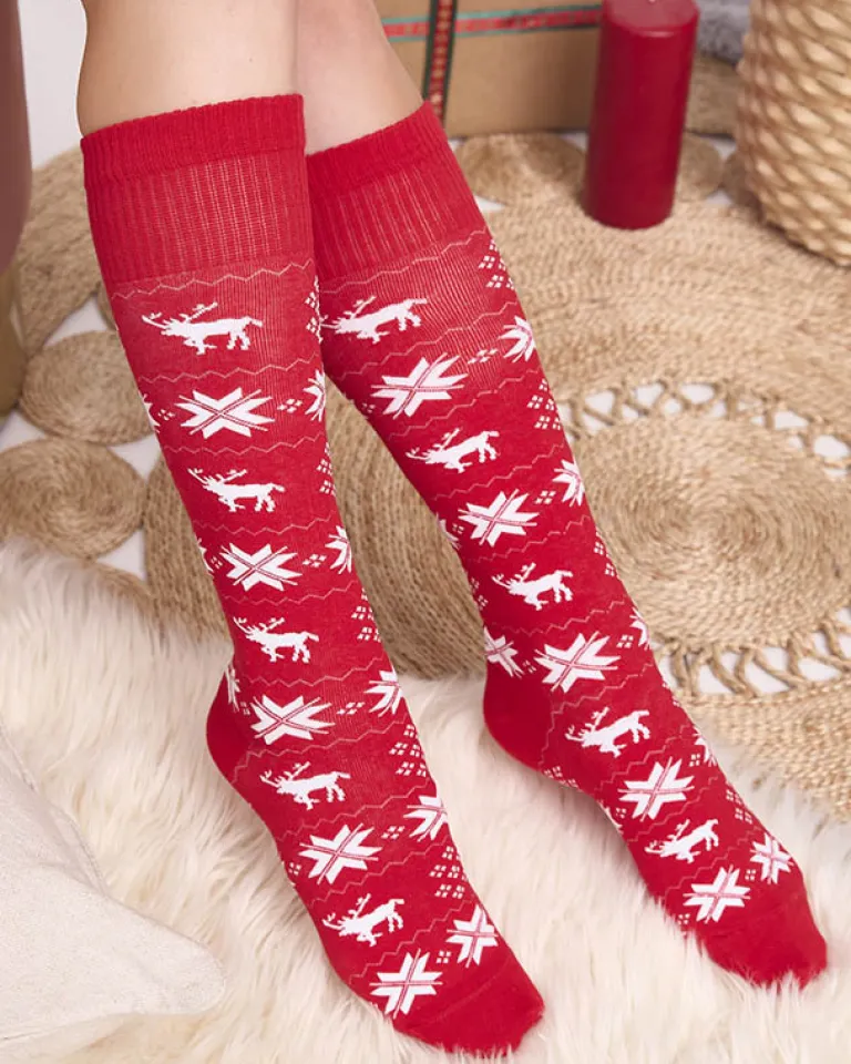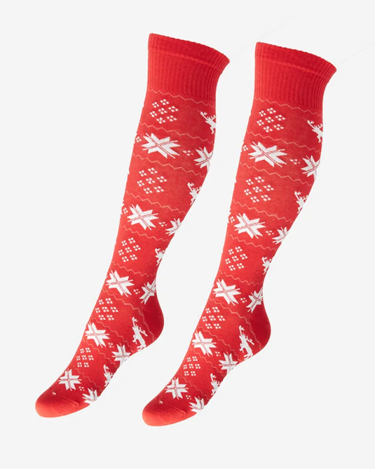 - Przeurocze damskie długie skarpety, wykonane z elastycznej tkaniny bawełnianej wykończonej świątecznym wzorem. Ciepłe i wygodne – to doskonała propozycja na prezent!