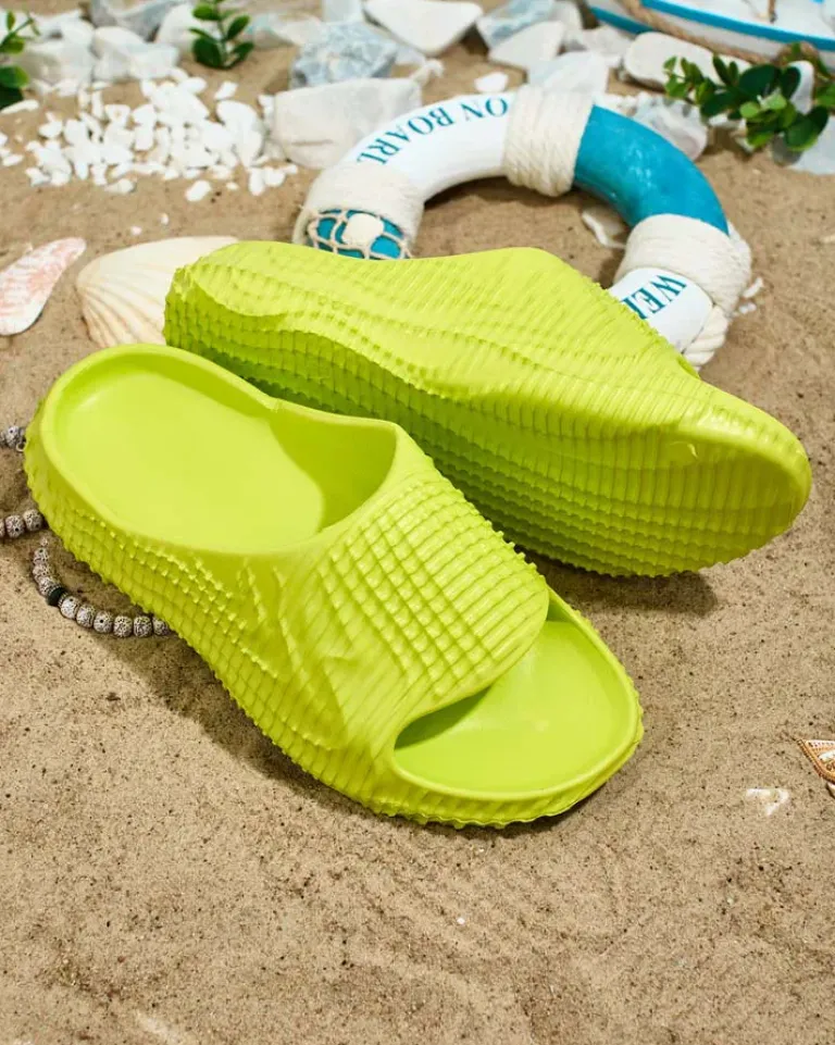 - Świetne damskie gumowe klapki na płaskiej podeszwie. Posiadają ozdobną cholewkę z tłoczonej gumy. Idealny wybór na wakacje!