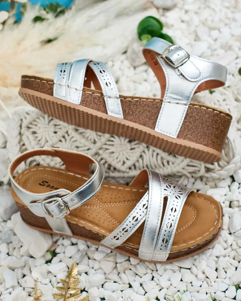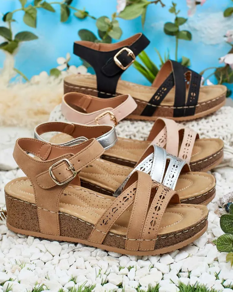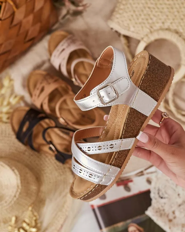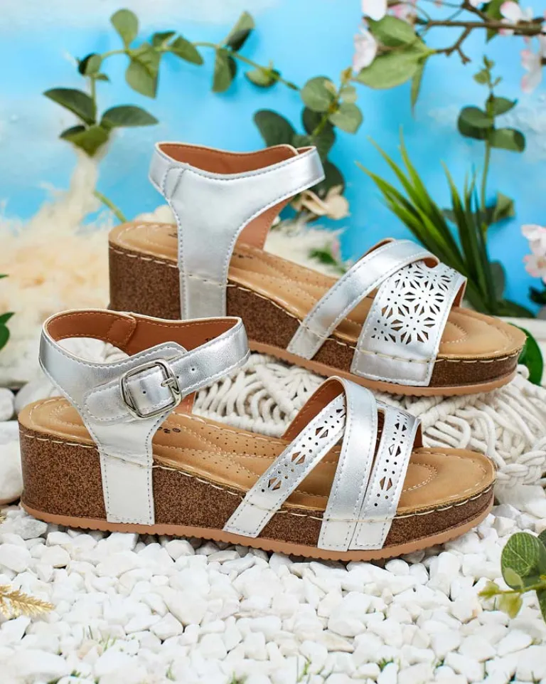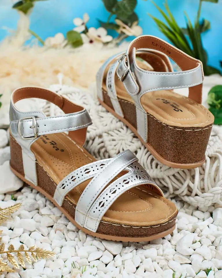 - Świetne damskie sandałki na koturnie. Wykonane w całości ze skóry ekologicznej. Posiadają subtelną ozdobę na cholewce. Idealny wybór na wakacje!