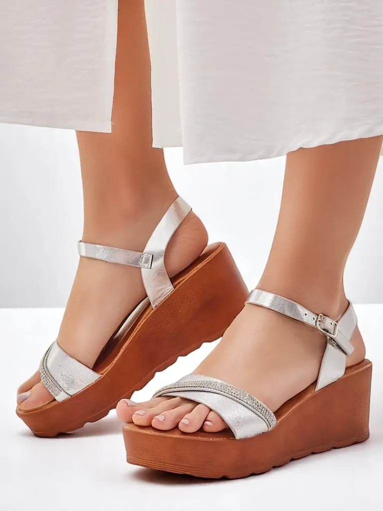 - Odkryj elegancję z sandałami Aurora Glow. Zjawiskowe na koturnie, ozdobione błyszczącymi cyrkoniami i subtelnym brokatem, idealnie podkreślają letni blask. Połączenie komfortu i luksusowego wyglądu – doskonałe na każdą wyjątkową okazję!