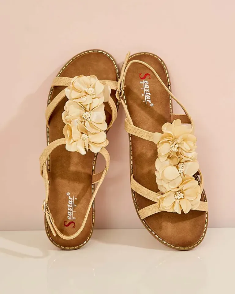 - Damskie sandałki z ozdobną cholewką- to idealny pomysł na gorące letnie dni. Model całościowo wykonany ze skóry ekologicznej. Obuwie zapinane na sprzączkę. Załóż je do krótkich spodenek!