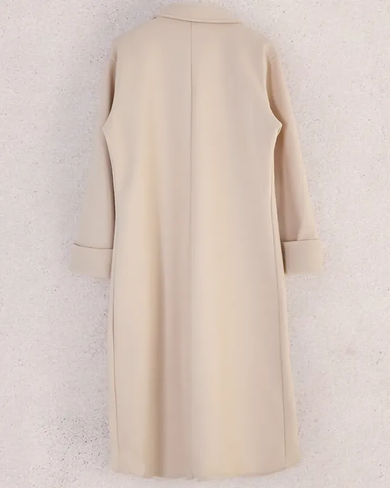 - Długi damski płaszcz z przyjemnego materiału. Model posiada długie rękawy i zapięcie na guziki. Posiada podszewkę. Idealna propozycja na jesień! UWAGA: Dokładność pomiaru (+/-) 1 cm. Wymiary mierzone na płasko.
