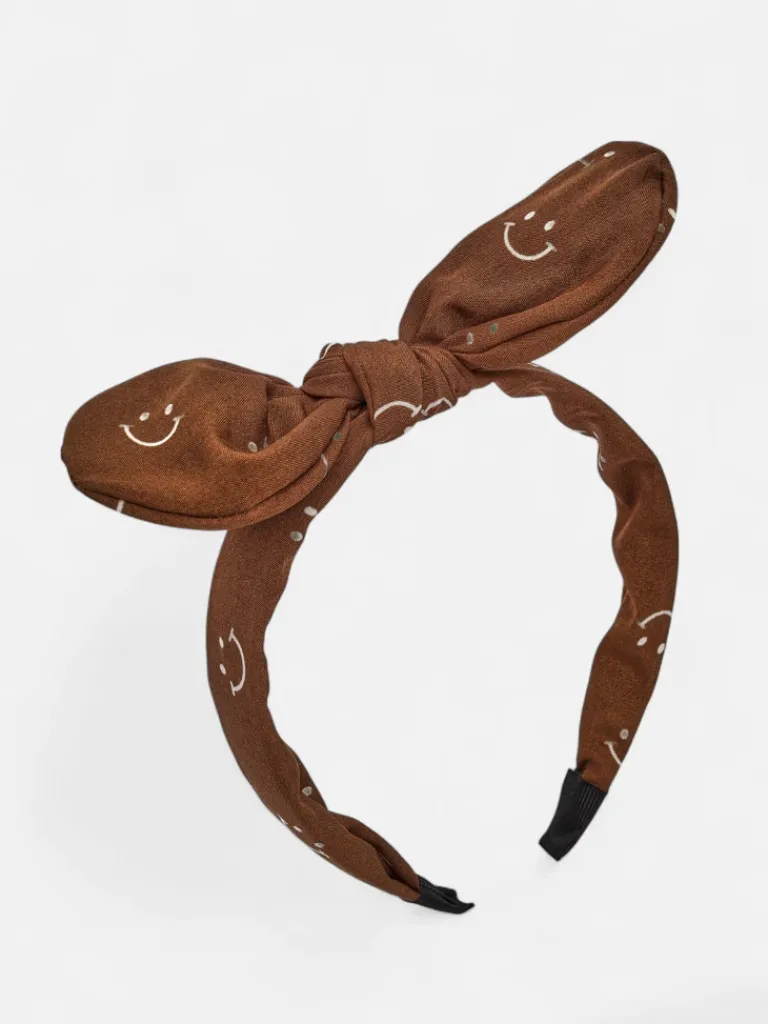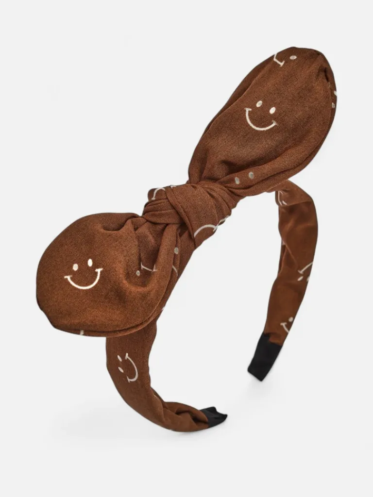 - Urocza dziecięca opaska do włosów z kokardką ozdobioną printem w uśmiechnięte buźki. Wygodna, elastyczna i idealna do codziennych stylizacji – doda radości każdemu dziecięcemu lookowi!