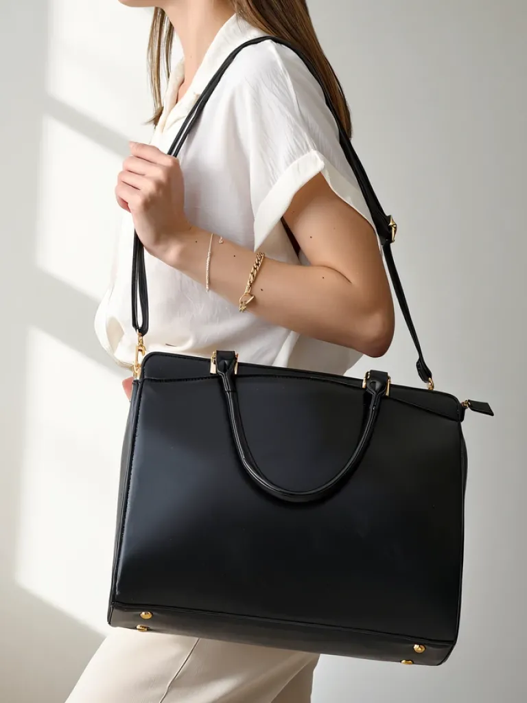 - Duża damska torebka wykonana z eko-skóry i zapinana na suwak.