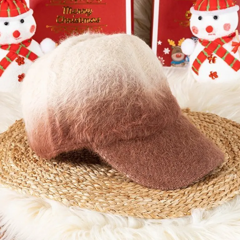 - Dwukolorowa damska czapka z daszkiem i z futrzanym wykończeniem. Nie posiada w środku podszewki. Z tyłu zapięcie jest regulowane na rzep.