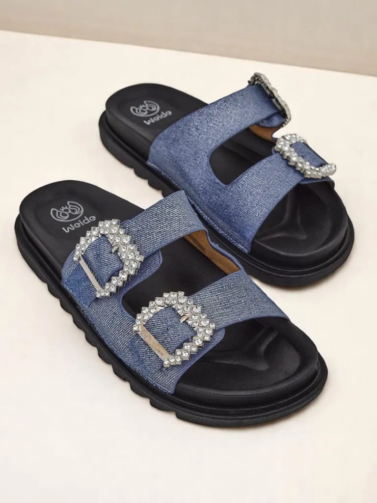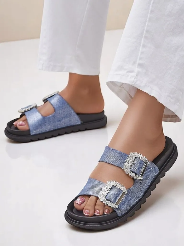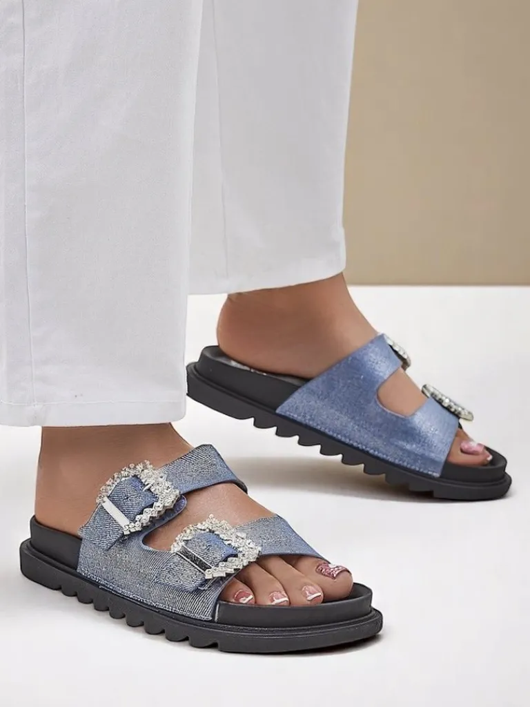 - Przepiękne klapki damskie wykonane ze skóry ekologicznej, zdobione plastikowymi klamerkami z cyrkoniami. Gumowa podeszwa. Model w ciekawej kolorystyce. Idealnie uzupełnią letnie stylizacje!