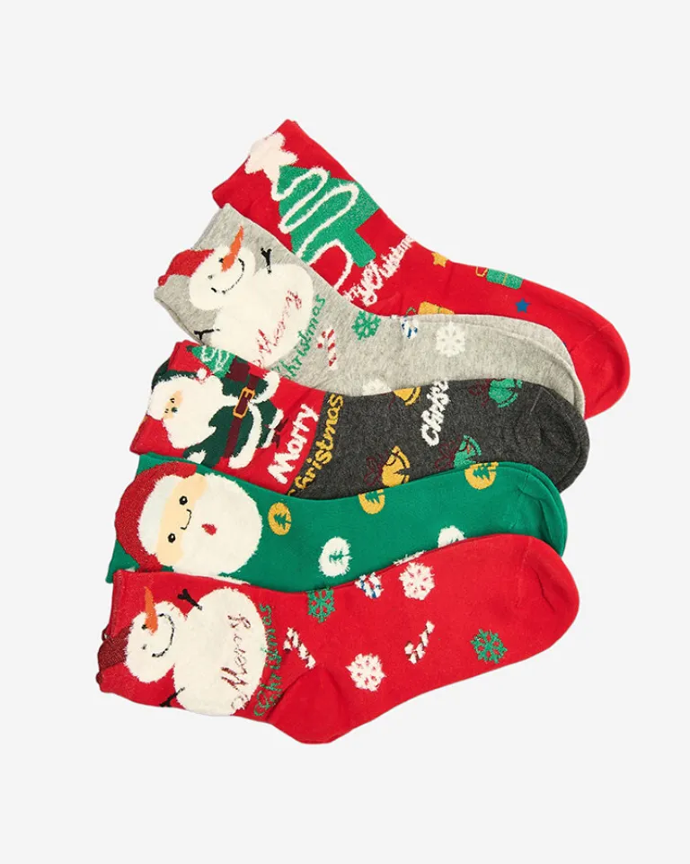 - Skarpety damskie z materiału bawełnianego wykończonego świątecznym wzorem. Model z uroczymi motywami – to idealny pomysł na prezent na gwiazdkę!