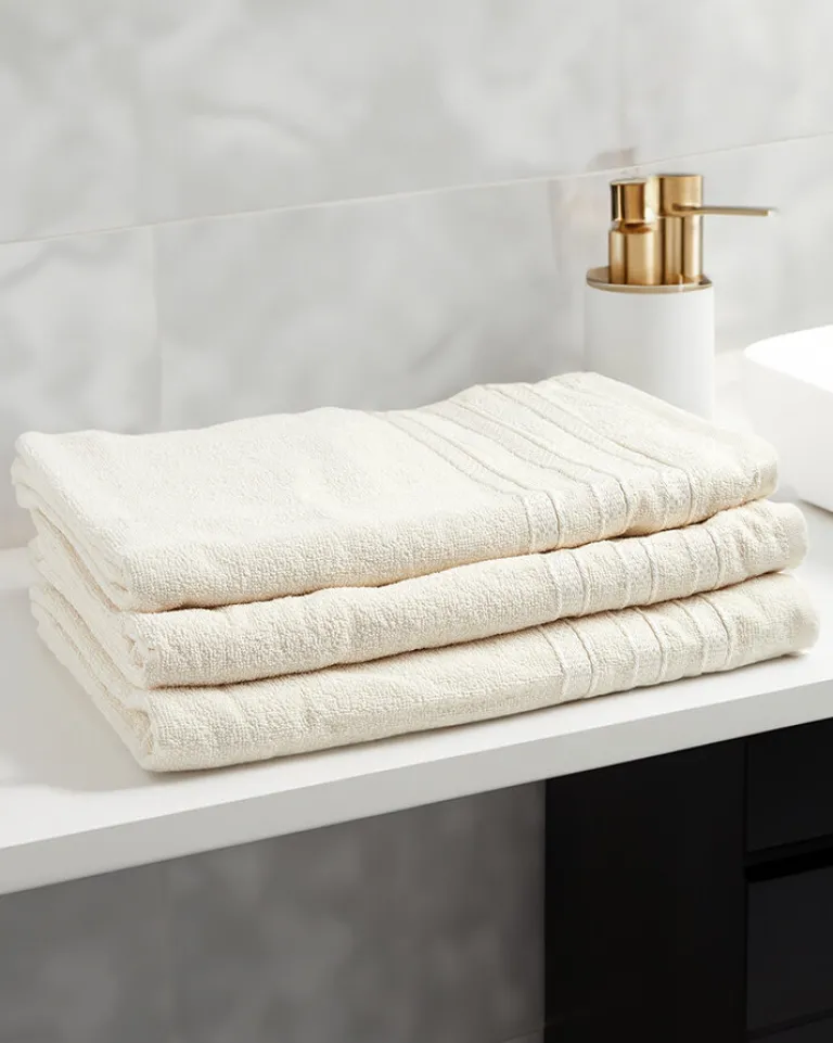 - Komplet ręczników łazienkowych bawełnianych. Zestaw zawiera: 3 szt o wymiarach 70 cm x 140 cm. Ręczniki idealnie nadają się do codziennego użytku!