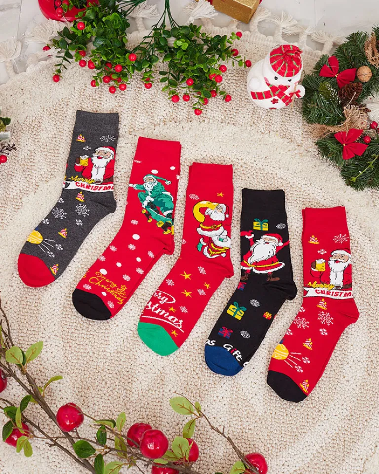 - Rewelacyjne męskie skarpety wykonane z elastycznej tkaniny bawełnianej wykończonej świątecznym wzorem. Ciepłe i wygodne – to doskonała propozycja na zimowe wieczory!