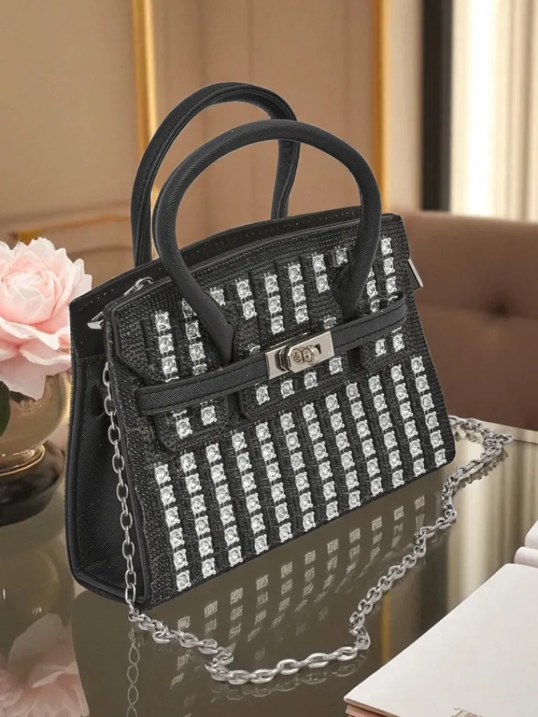 - Elegancka kopertówka z połyskującymi cyrkoniami, 1 komora, zamykana na zamek. Stylowe uszy i ozdobny łańcuszek dodają szyku. Idealna na wyjątkowe okazje – olśniewaj z klasą!