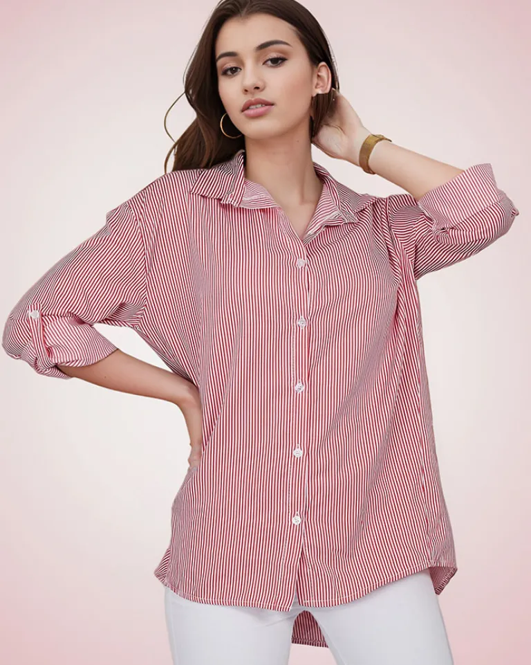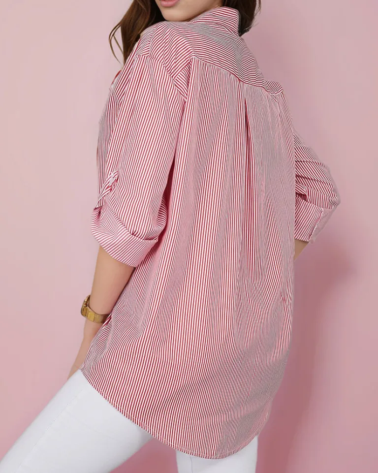 - Rewelacyjna damska koszula w paski z długimi rękawami. Model z kołnierzykiem, jest zapinany na guziki. Must have w szafie każdej kobiety!