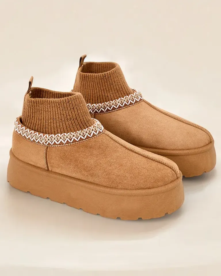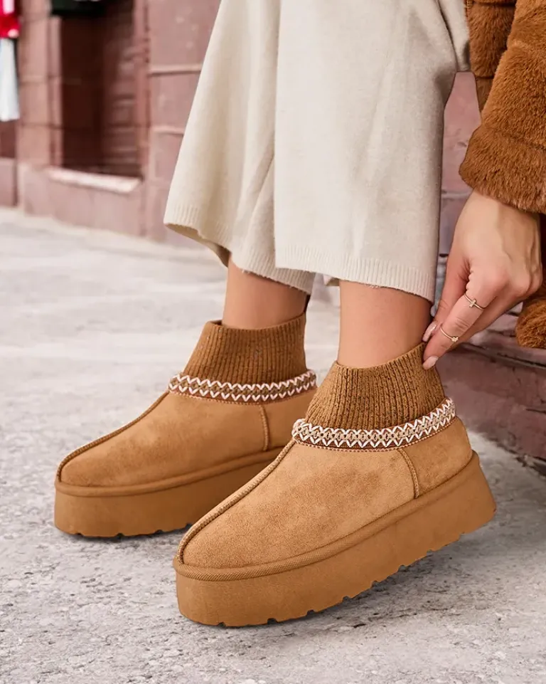- Świetne damskie zimowe buty typu śniegowce na platformie. Cholewka wykonana jest ze skóry ekologicznej zamszowej, środek ocieplony futerkiem. Idealna baza na zimę!