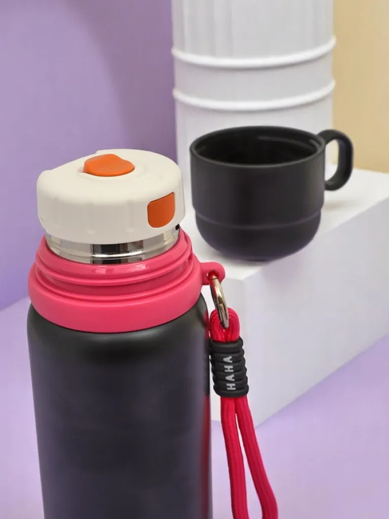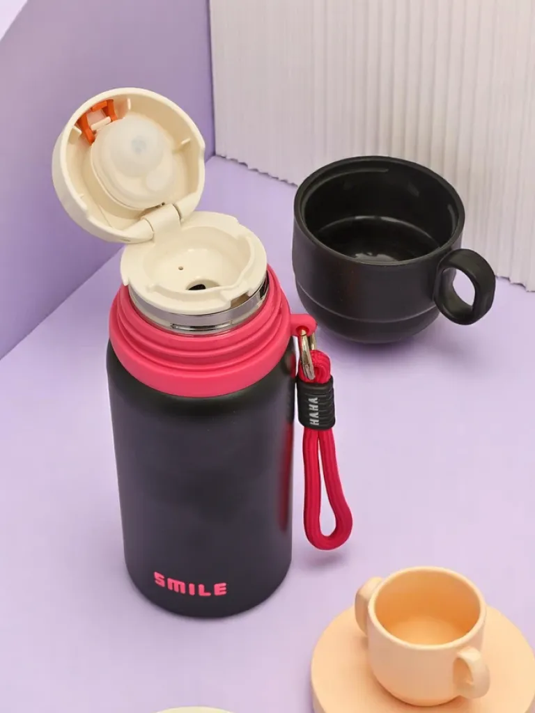 - Kubek termiczny termos z kubeczkiem o pojemności 430 ml to rozwiązanie dla osób, które cenią sobie wygodę oraz utrzymanie temperatury napoju przez dłuższy czas. Konstrukcja ze stali nierdzewnej pozwala na używanie go na zimno i gorąco!