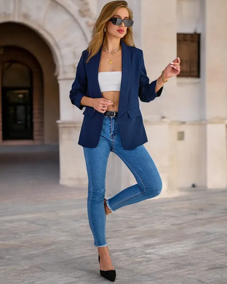 - Stylowa marynarka damska. Model z rękawami 3/4, nie posiada zapięcia. Must have tego sezonu! UWAGA: Dokładność pomiaru (+/-) 1 cm.