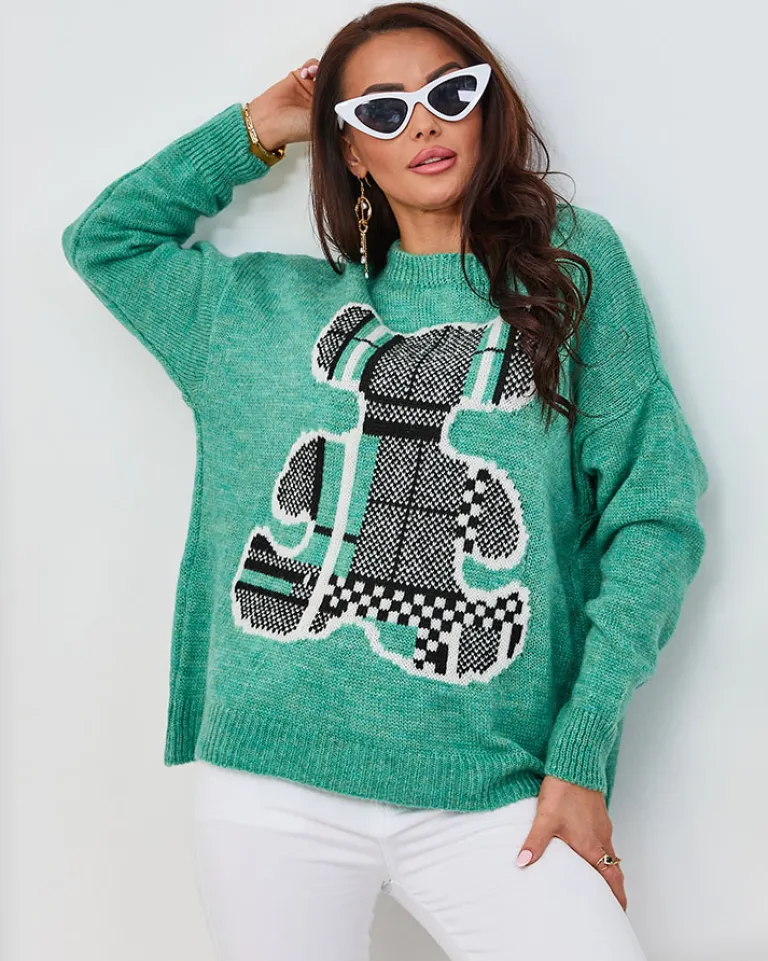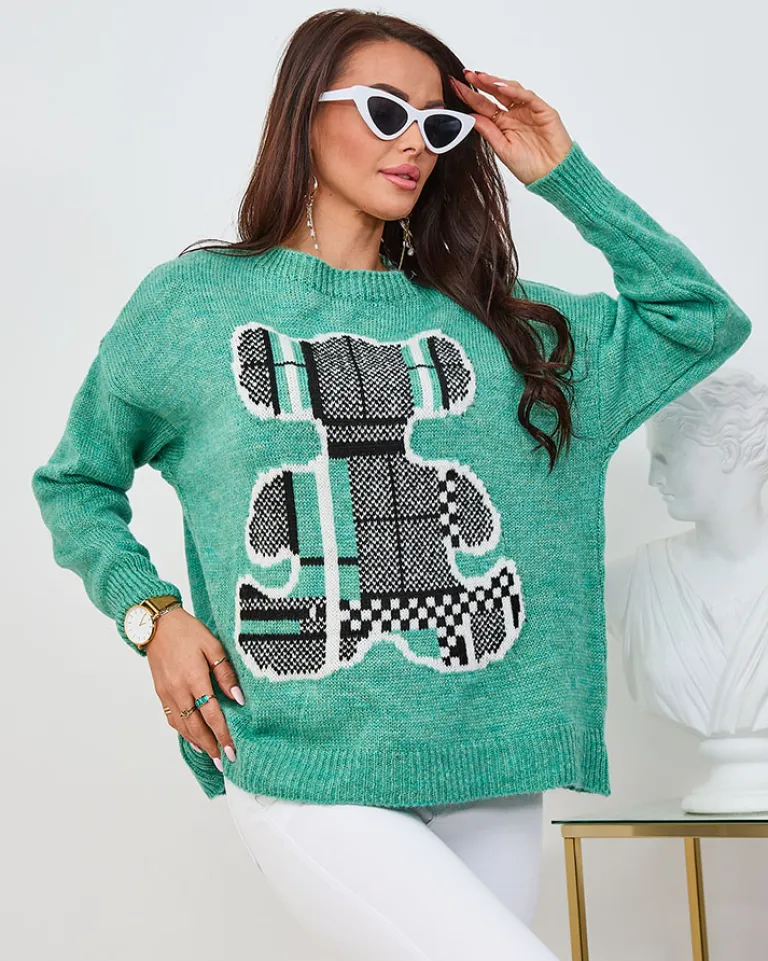 - Ten wyjątkowy sweter to esencja wygody i uroku. Wykonany z miękkiego materiału, sweter posiada okrągły dekolt i długie rękawy. Wzór z misiem dodaje mu wyjątkowego uroku!
