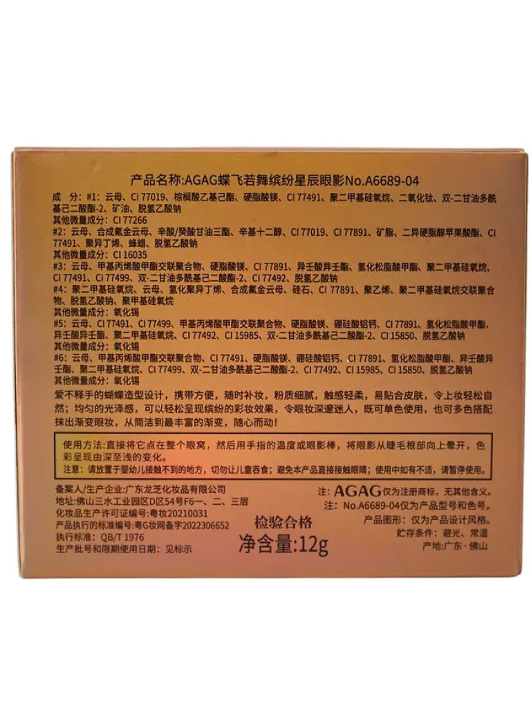 - Paletka 6 cieni do powiek w kształcie motyla oferuje szeroką gamę kolorów, które łatwo łączą się ze sobą, tworząc subtelne lub intensywne looki. Dzięki wysokiej jakości formułom, cienie są trwałe, łatwe w aplikacji i idealnie podkreślają spojrzenie.