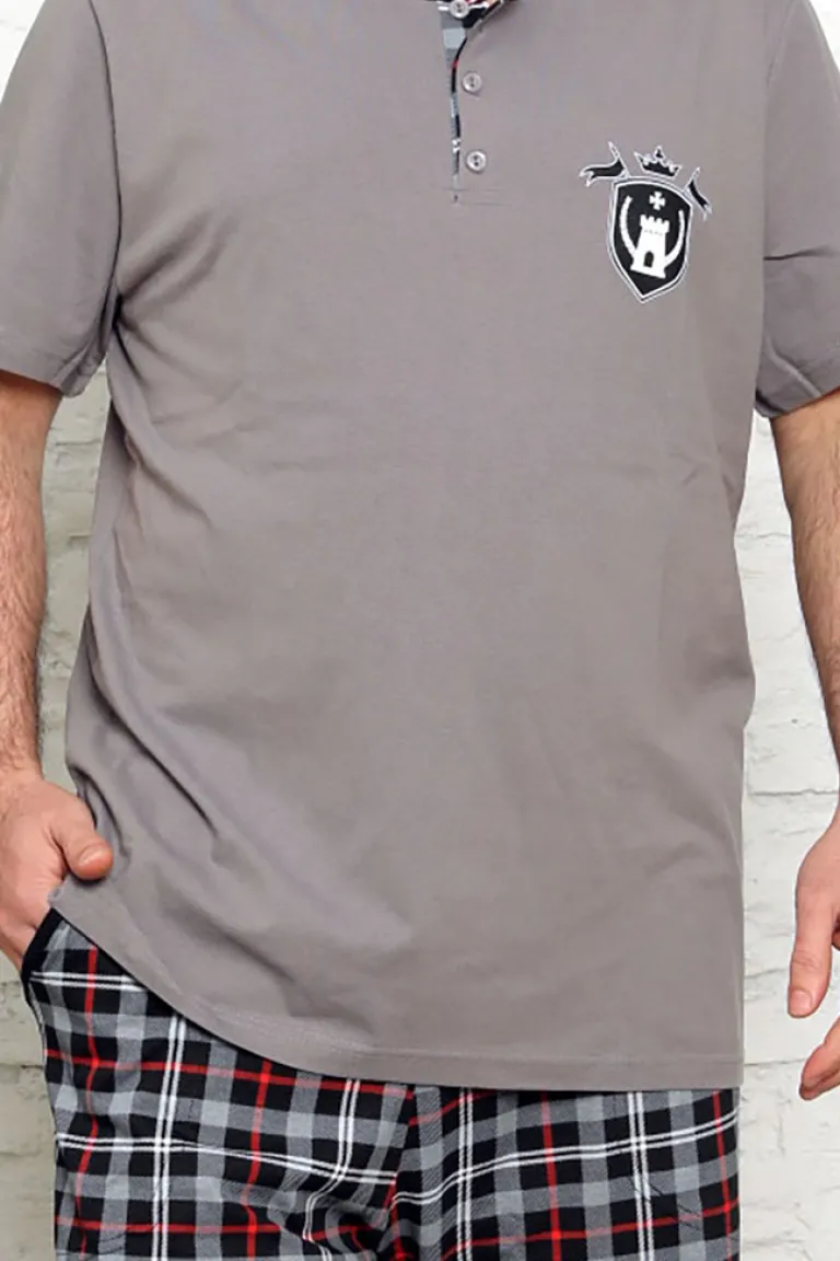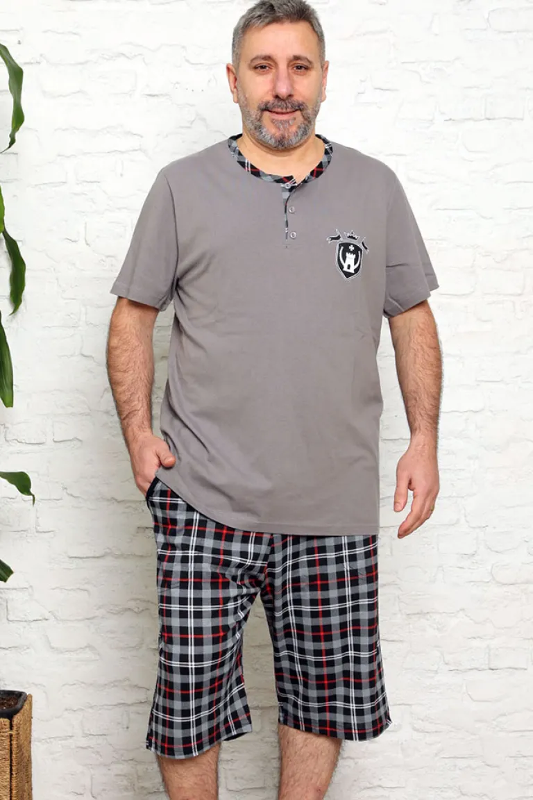 - Wygodna męska piżama 2- częściowa z krótkim rękawem i krótkimi nogawkami wykonana z materiału bawełnianego. Model zdobiony printem w kratkę. Idealna na domowe wieczory! UWAGA: Dokładność pomiaru (+/-) 1 cm.