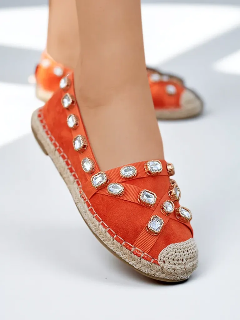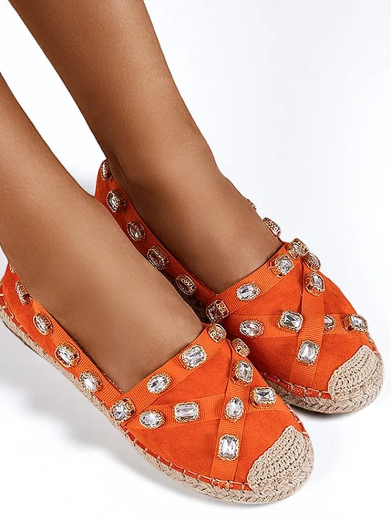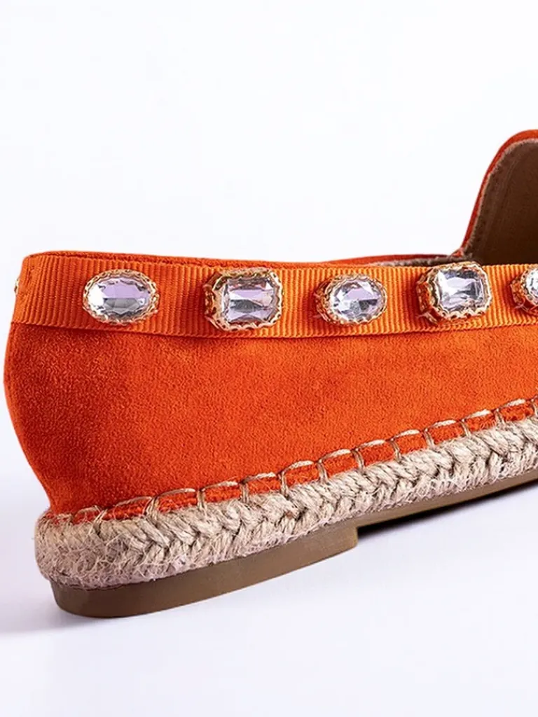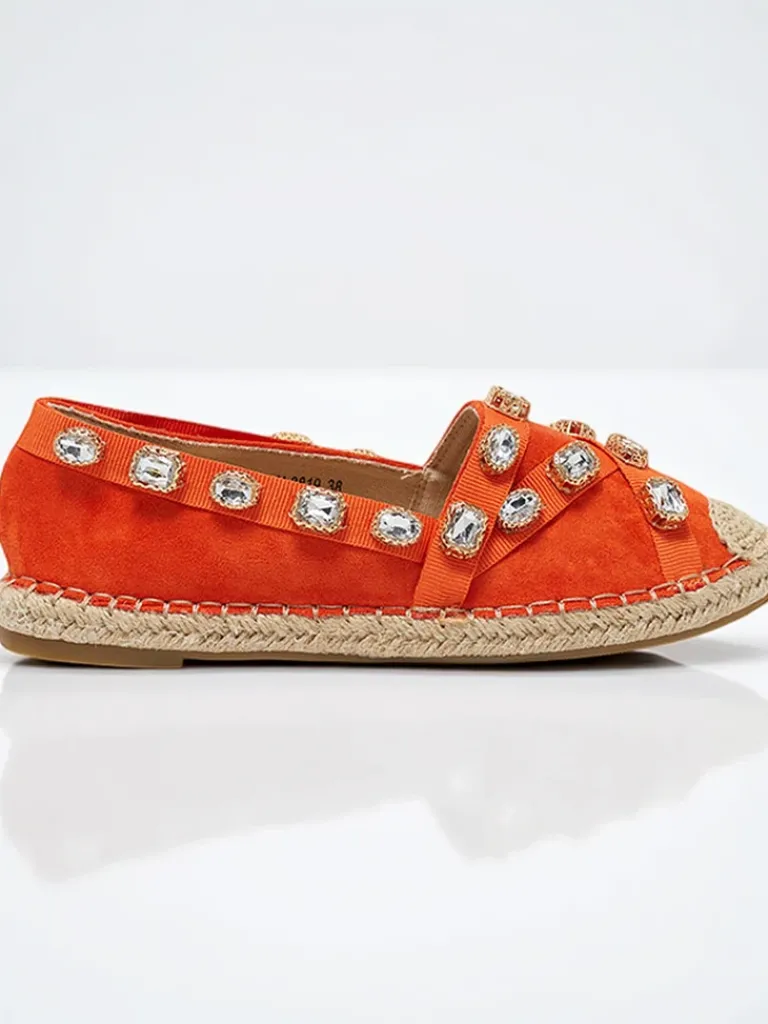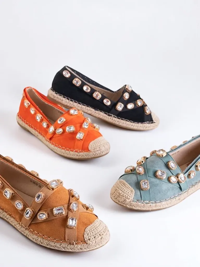 - Absolutnie stylowe damskie espadryle, wykonane z miękkiego zamszu ekologicznego, w środku tkaninowa wkładka. Cholewka zdobiona paseczkami z kryształkami. Idealnie się sprawdzą na cieplejsze dni!