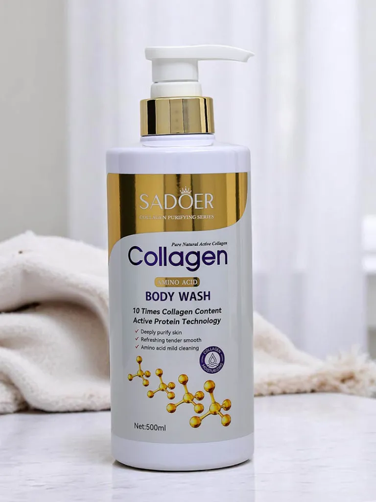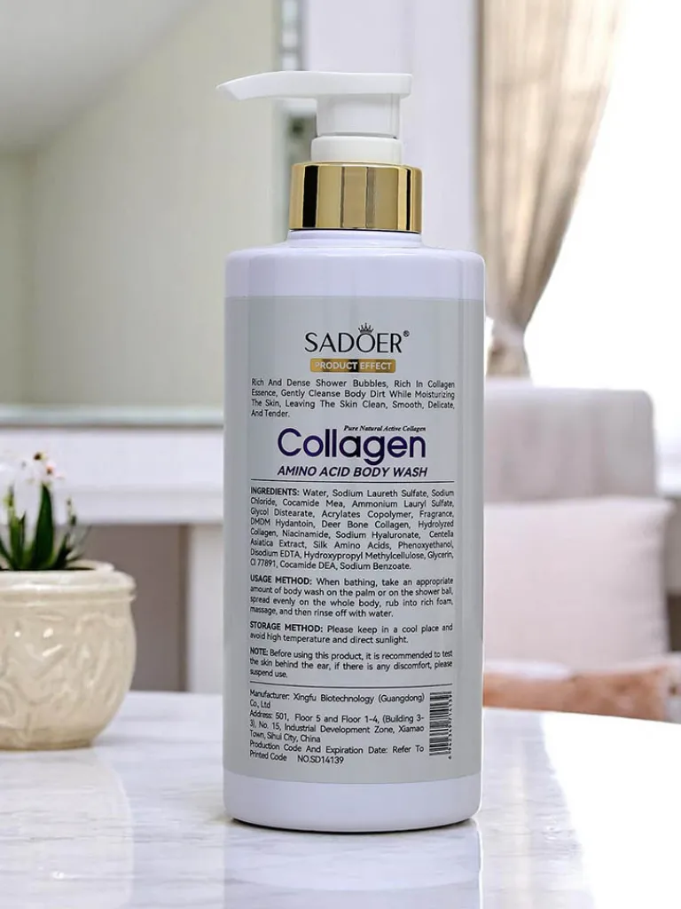 - Kolagenowy żel pod prysznic – delikatnie oczyszcza skórę, jednocześnie nawilżając i poprawiając jej elastyczność dzięki kolagenowi. Pozostawia skórę gładką, odświeżoną i przyjemnie pachnącą.