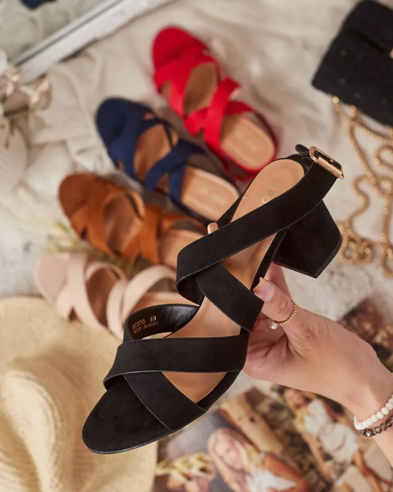 - Wyjątkowe sandałki na niskim słupku wykonane z eko skóry zamszowej i eko skórzanej wkładki. Posiadają ozdobne, plecione zapięcie na sprzączkę. Połączenie stylu i wygody. Słupek nadaje subtelnej elegancji, a sprzączka ułatwia ich zakładanie!
