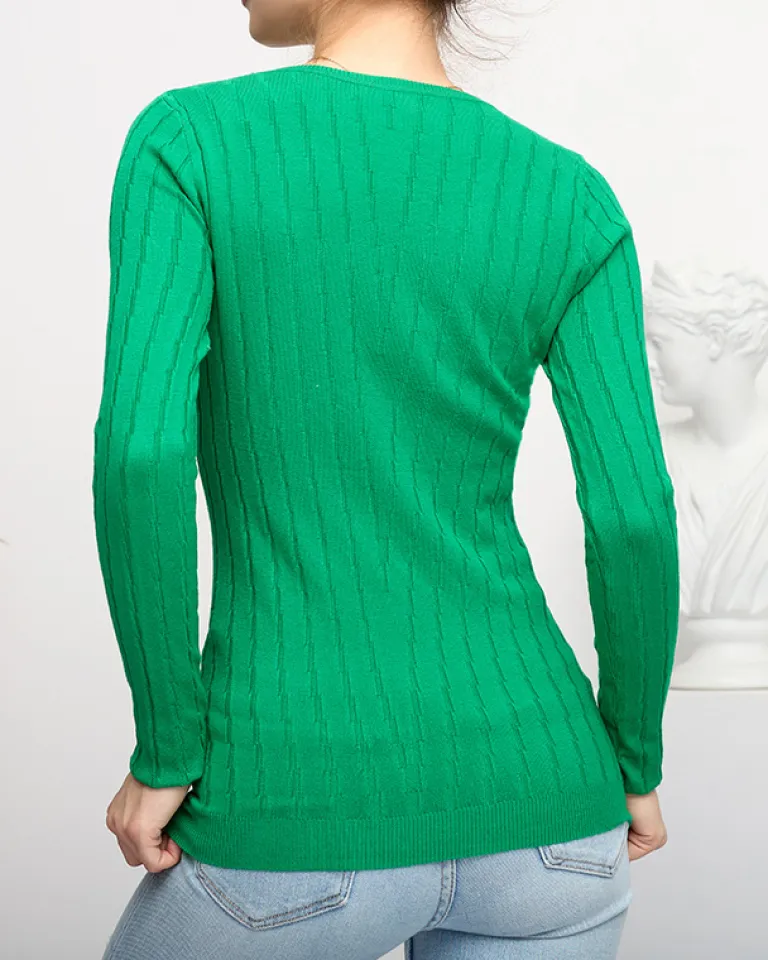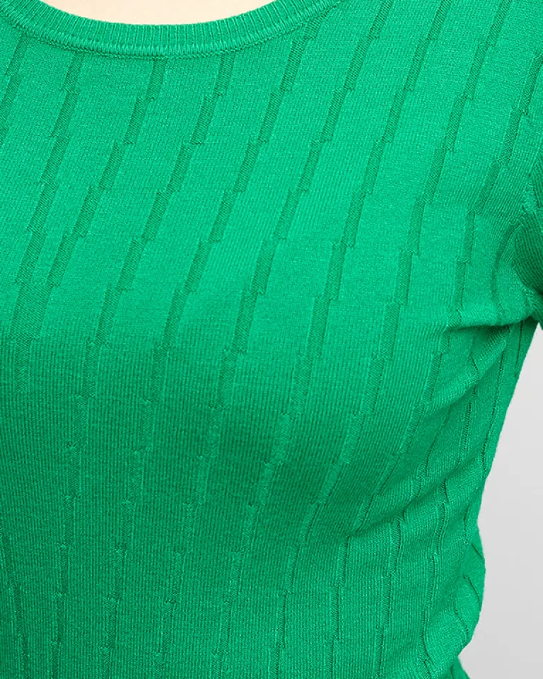 - Wyjątkowy damski sweter wykonany z przyjemnej, miękkiej tkaniny. Produkt posiada długie rękawy, okrągły dekolt oraz jest zdobiony prążkami. Idealny do tworzenia casualowych outfitów! UWAGA: Dokładność pomiaru (+/-) 1 cm.