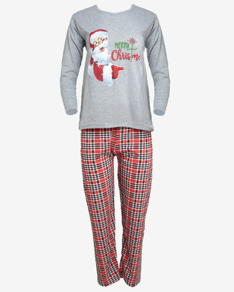 - Świąteczna damska 2-częściowa piżama wykonana z tkaniny bawełnianej wykończonej ozdobnym printem. Komplet posiada bluzkę z długimi rękawami oraz spodnie z gumą w pasie i prostymi nogawkami. UWAGA: Dokładność pomiaru (+/-) 1 cm.