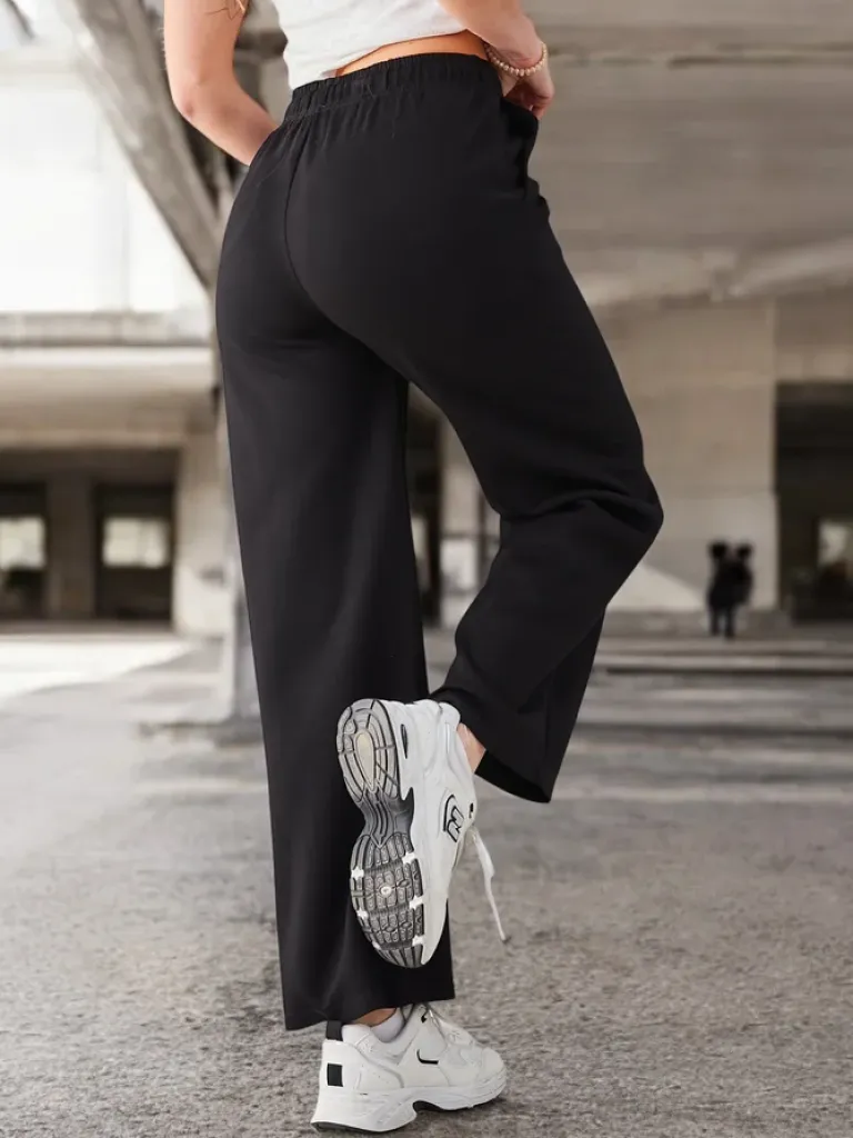 - Rewelacyjne szerokie spodnie wykonane z lekkiej tkaniny, model posiada 2 kieszenie, gumę i troczki w pasie. Modny design w kant. Must have w Twojej szafie! UWAGA: Dokładność pomiaru (+/-) 1 cm.