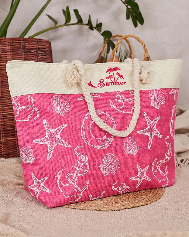 - Duża torba damska, wykonana z tkaniny w wakacyjny wzór. Model posiada 1 komorę oraz jest zapinany na zamek. Idealna na co dzień czy na plażę!