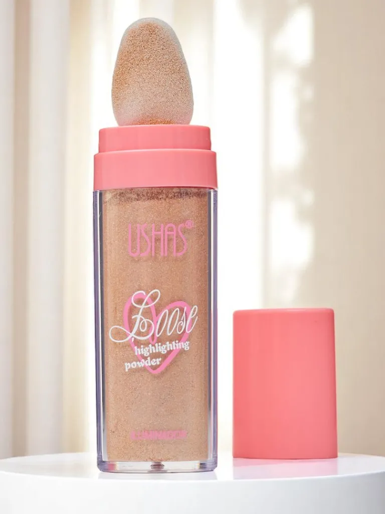 - Sypki rozświetlacz do twarzy z praktyczną gąbeczką zapewnia łatwą aplikację i efekt naturalnego blasku. Idealny do podkreślenia kości policzkowych, łuku brwiowego i nosa.