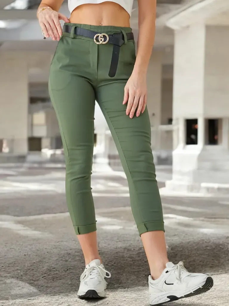 - Fenomenalne zwężane spodnie wykonane z lekkiej tkaniny, model posiada gumę w pasie i pasek. Dodatkowo 2 kieszenie. Hit tego sezonu! UWAGA: Dokładność pomiaru (+/-) 1 cm.