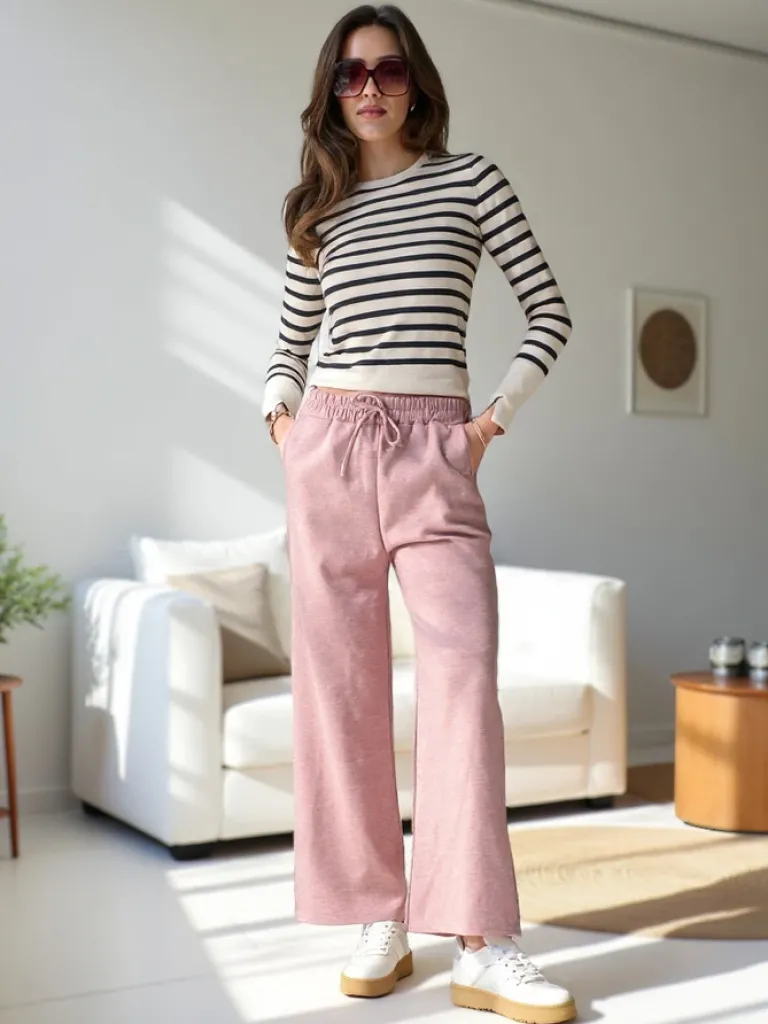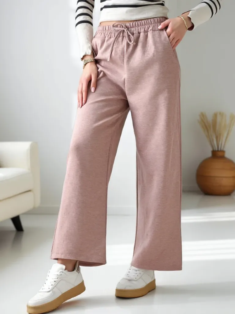 - Szerokie spodnie damskie dresowe to połączenie komfortu i stylu. Wykonane z lekkiego, oddychającego materiału, idealne na co dzień. Ich luźny krój zapewnia swobodę ruchów, a elastyczny pas gwarantuje wygodę.
