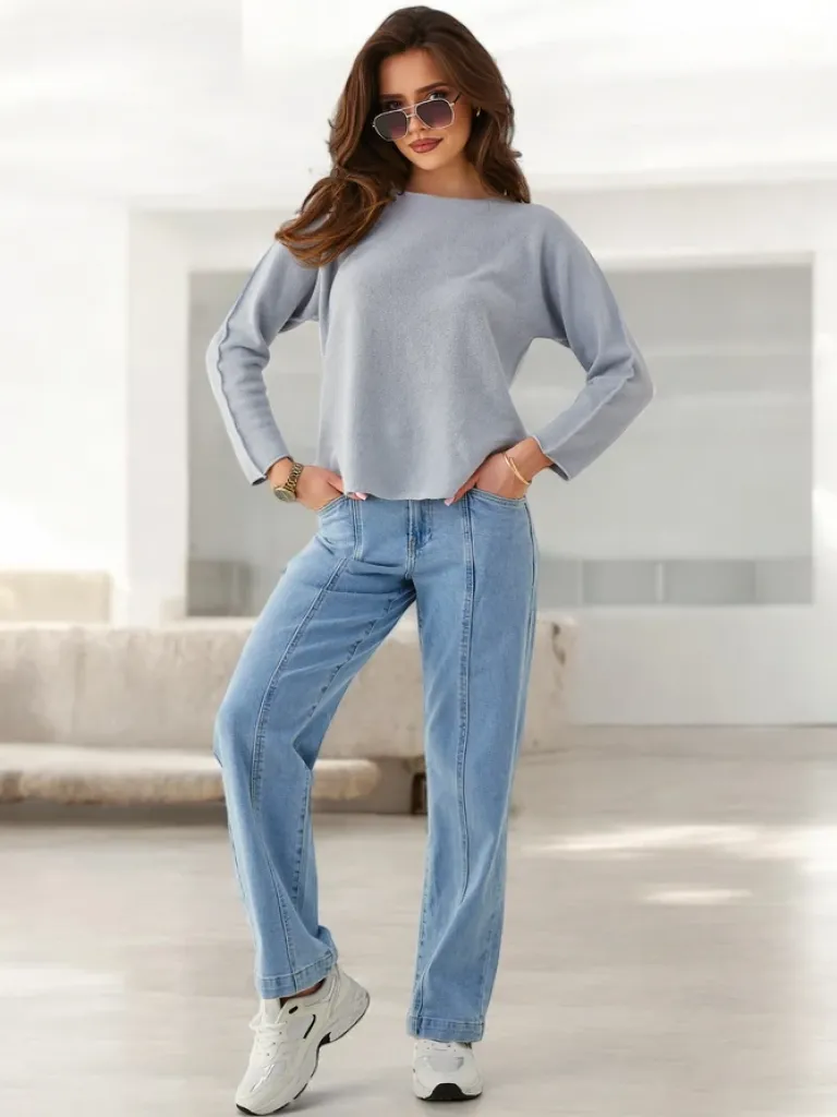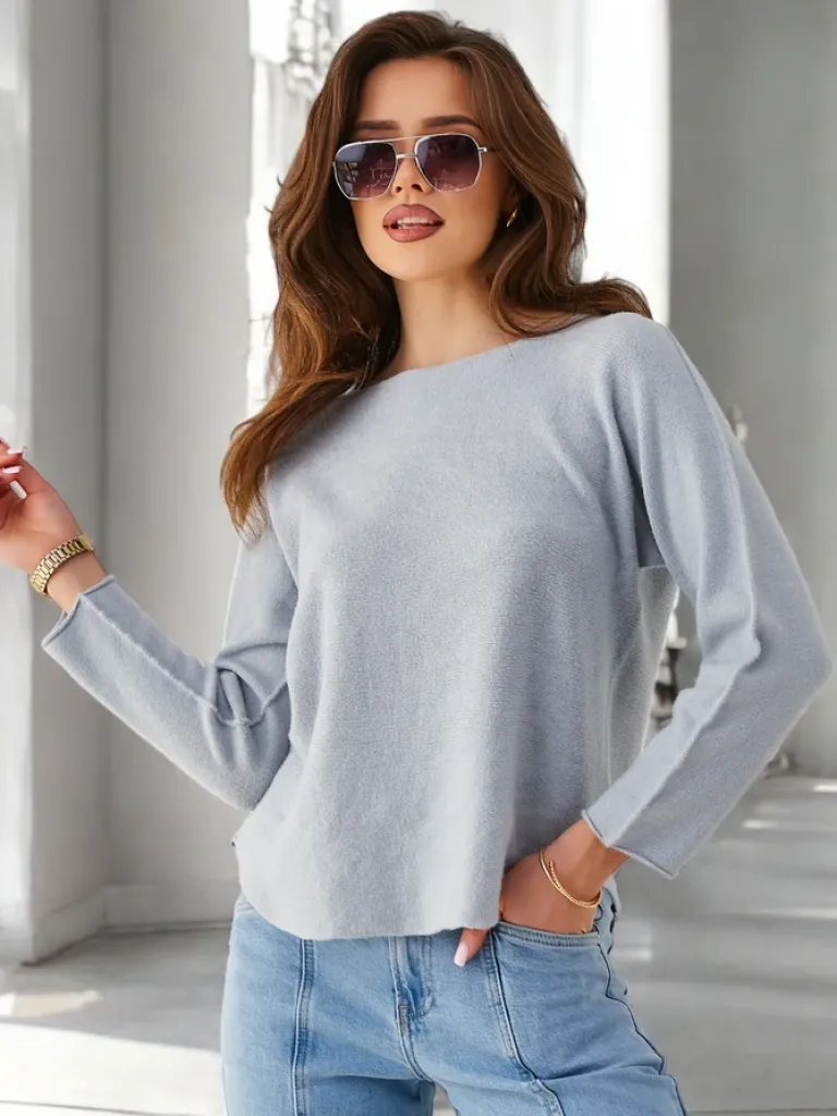 - Damski sweterek wykonany z lekkiej, wiskozowej tkaniny. Posiada długie rękawy i okrągły dekolt, zapewniając komfort i elegancję w codziennych stylizacjach. Dostępny w różnych kolorach, pozwala na łatwe dopasowanie do każdej garderoby!