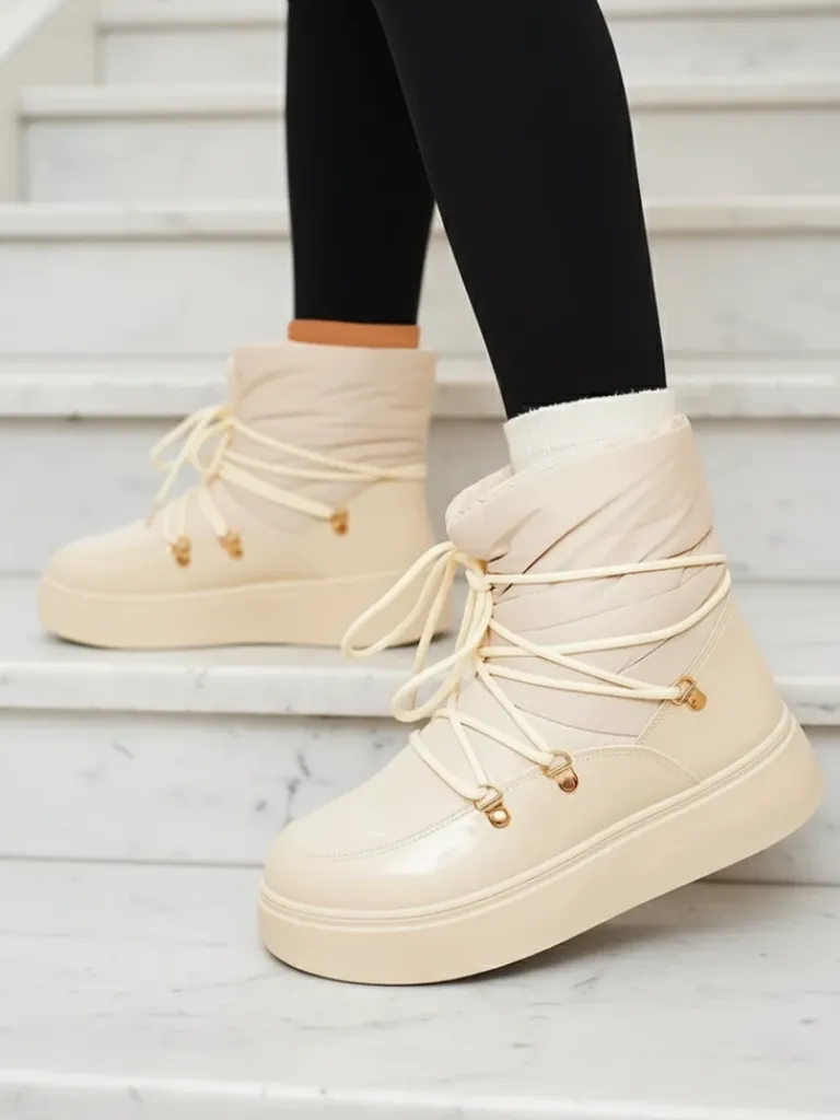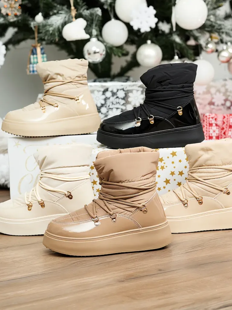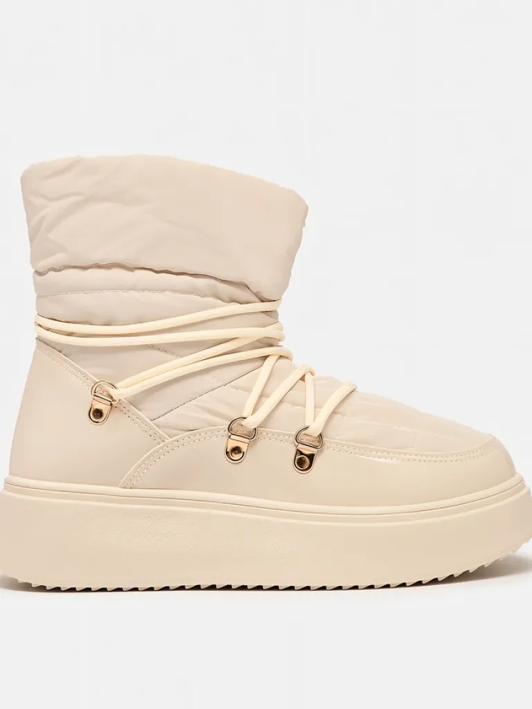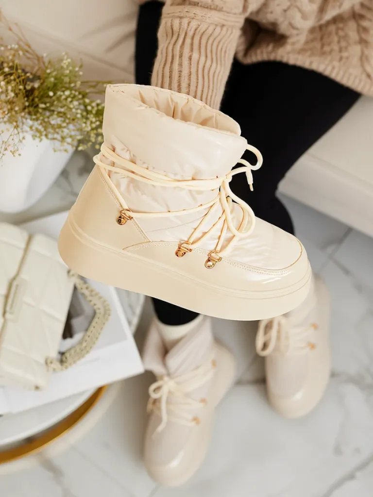 Best Wsuwane śniegowce damskie w kremowym kolorze Dabenda Śniegowce|Botki Z Grubym Ociepleniem