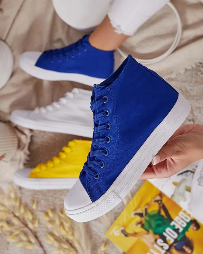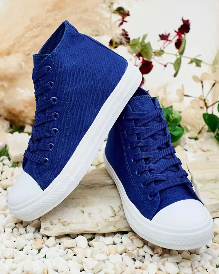 - Wysokie sportowe trampki damskie wykonane z materiału tkaninowego. Model na wygodnej podeszwie. Cholewka jest sznurowana. Świetne do tworzenia casualowych outfitów!