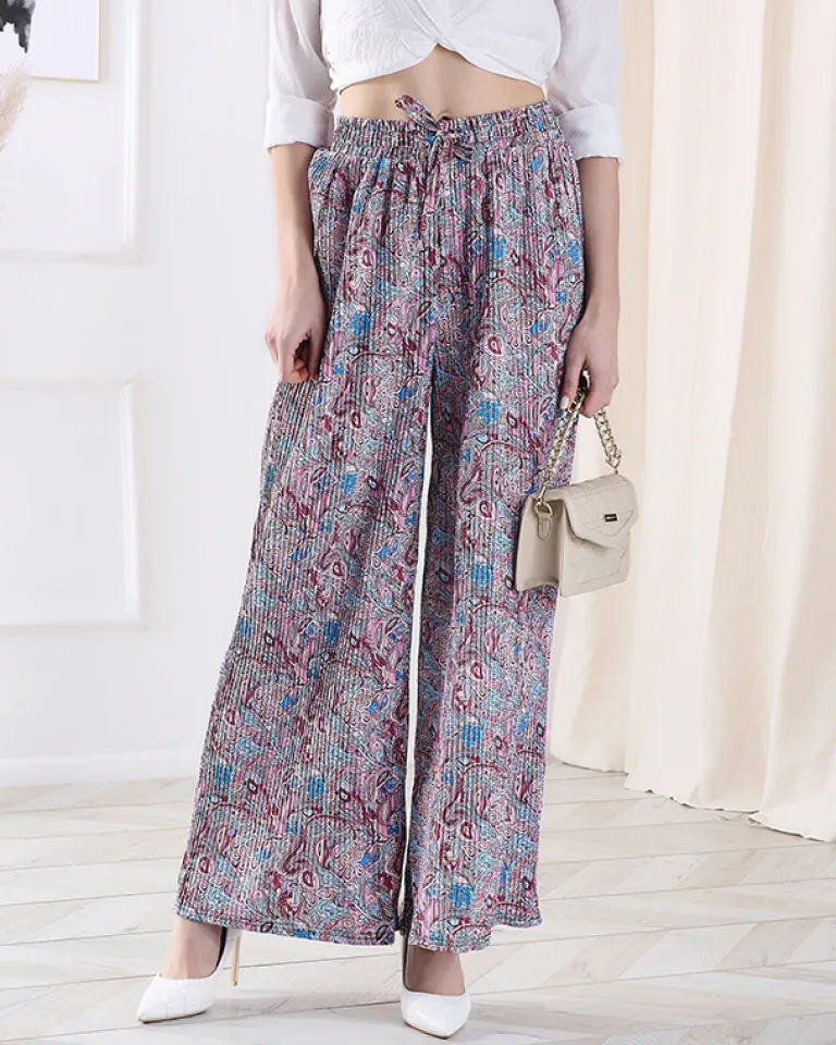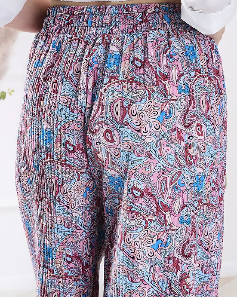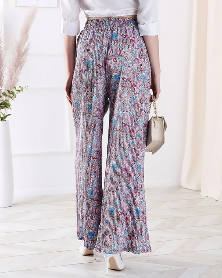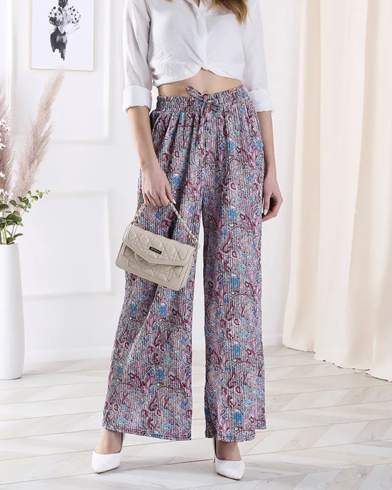 Best Wzorzyste szerokie spodnie damskie w kolorze niebieskim Spodnie Materiałowe