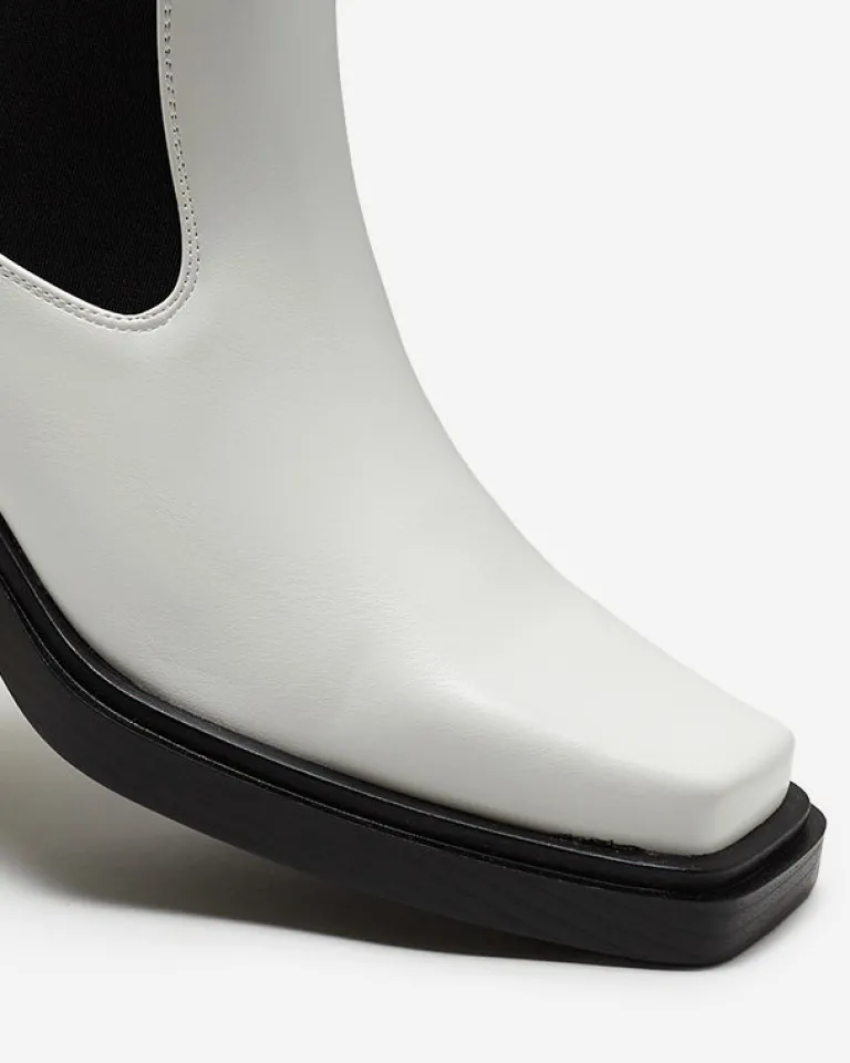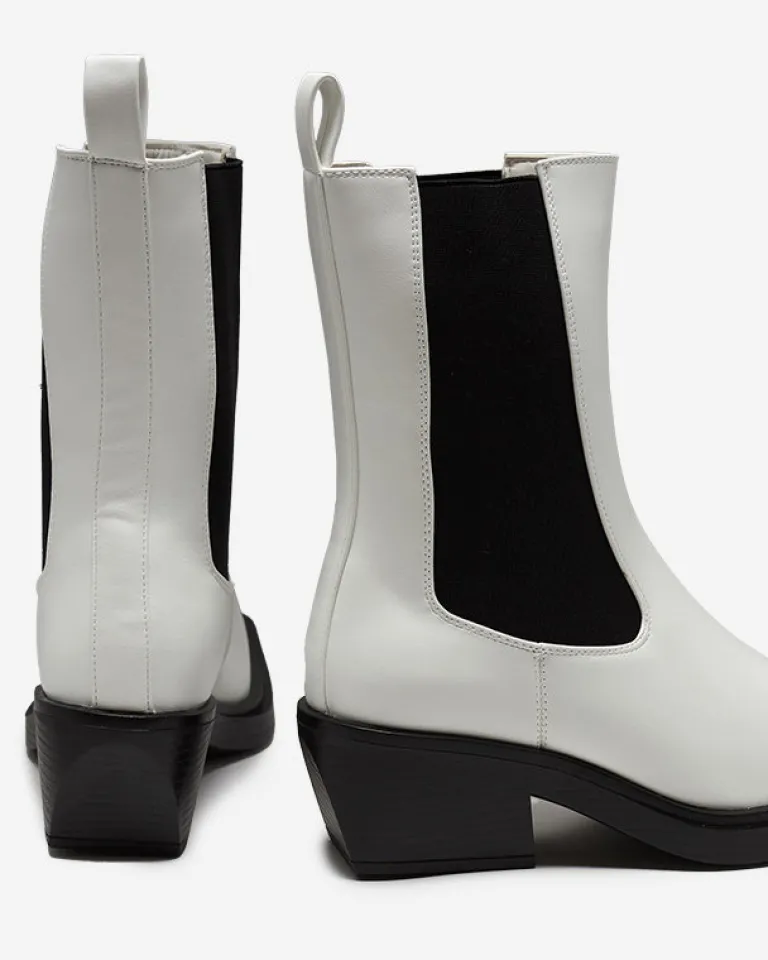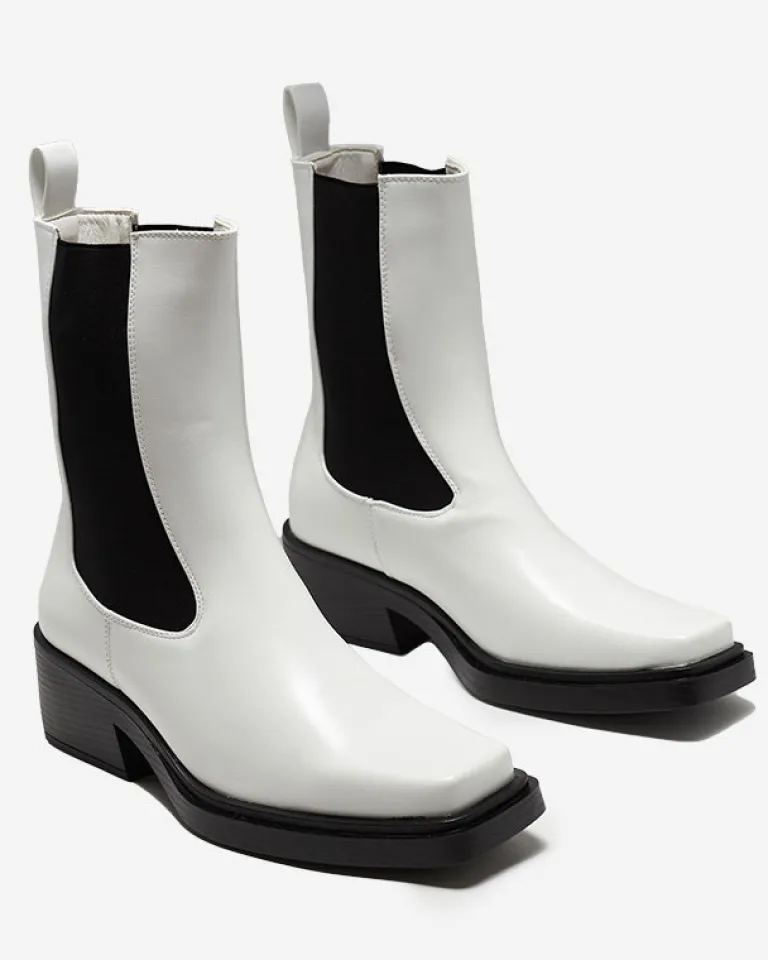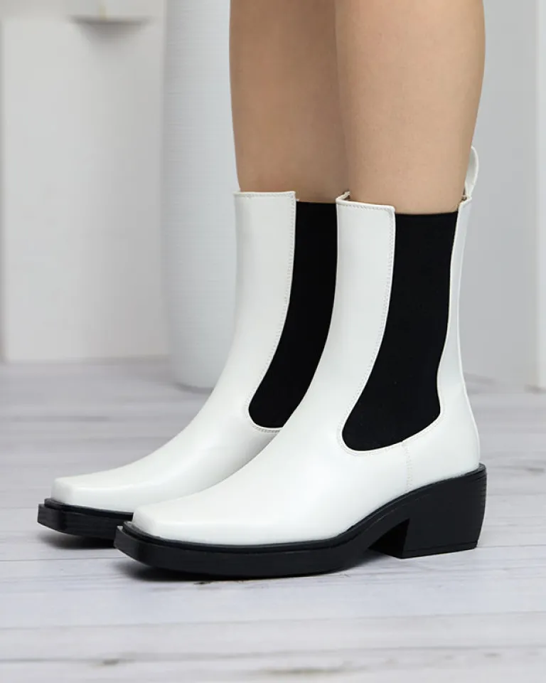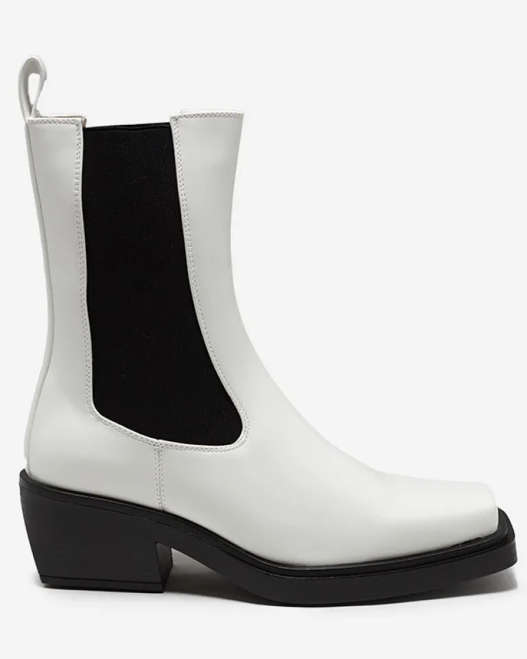 - Wysokie wsuwane damskie botki na niskim słupku wykonane z eko-skóry. Model posiada elastyczne wstawki po bokach oraz kwadratowy nosek. Buty są delikatnie ocieplane. CZARNE OCIEPLANE BOTKI DARRAN