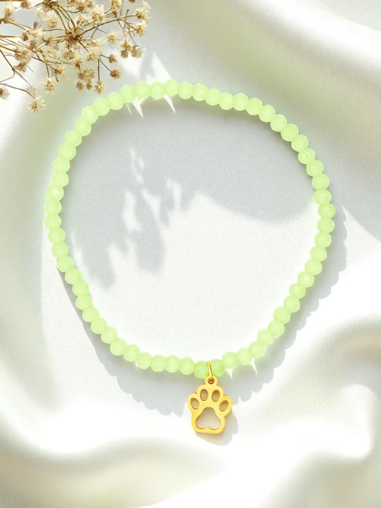 - Bransoletka z koralikami i zawieszką w kształcie łapki to uroczy dodatek, który łączy delikatność z nutą zabawy. Idealna dla miłośników zwierząt, podkreśla indywidualny styl i dodaje charakteru każdej stylizacji.